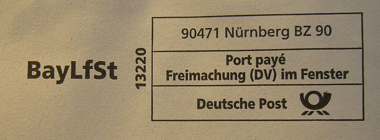 Deutsch: DV-Freimachung für die Deutsche Post AG (Kunde: Bayerisches Landesamt für Steuern) |