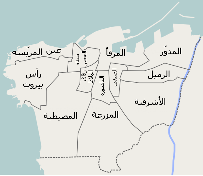 العربية: أحياء مدينة بيروت English: districts of Beirut in Arabic Français : Quartiers de Beyrouth |