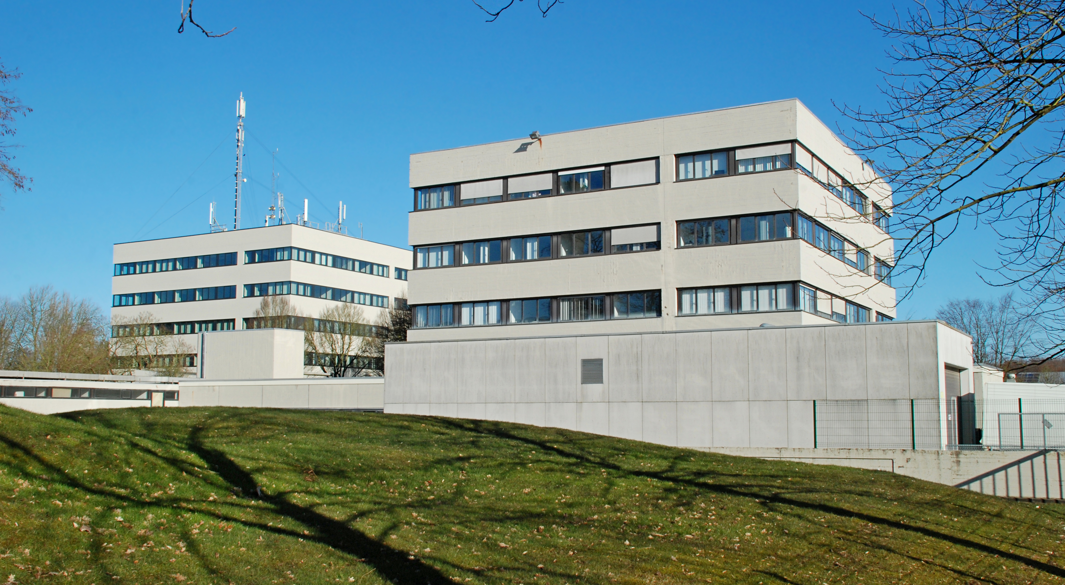 Français : Belgique - Brabant wallon - Louvain-la-Neuve - Cyclotron (chemin du Cyclotron, architecture de style brutaliste, 1970-1972) : Tour est et tour nord قالب:Wiki Loves Heritage Belgium in 2018 type-region |