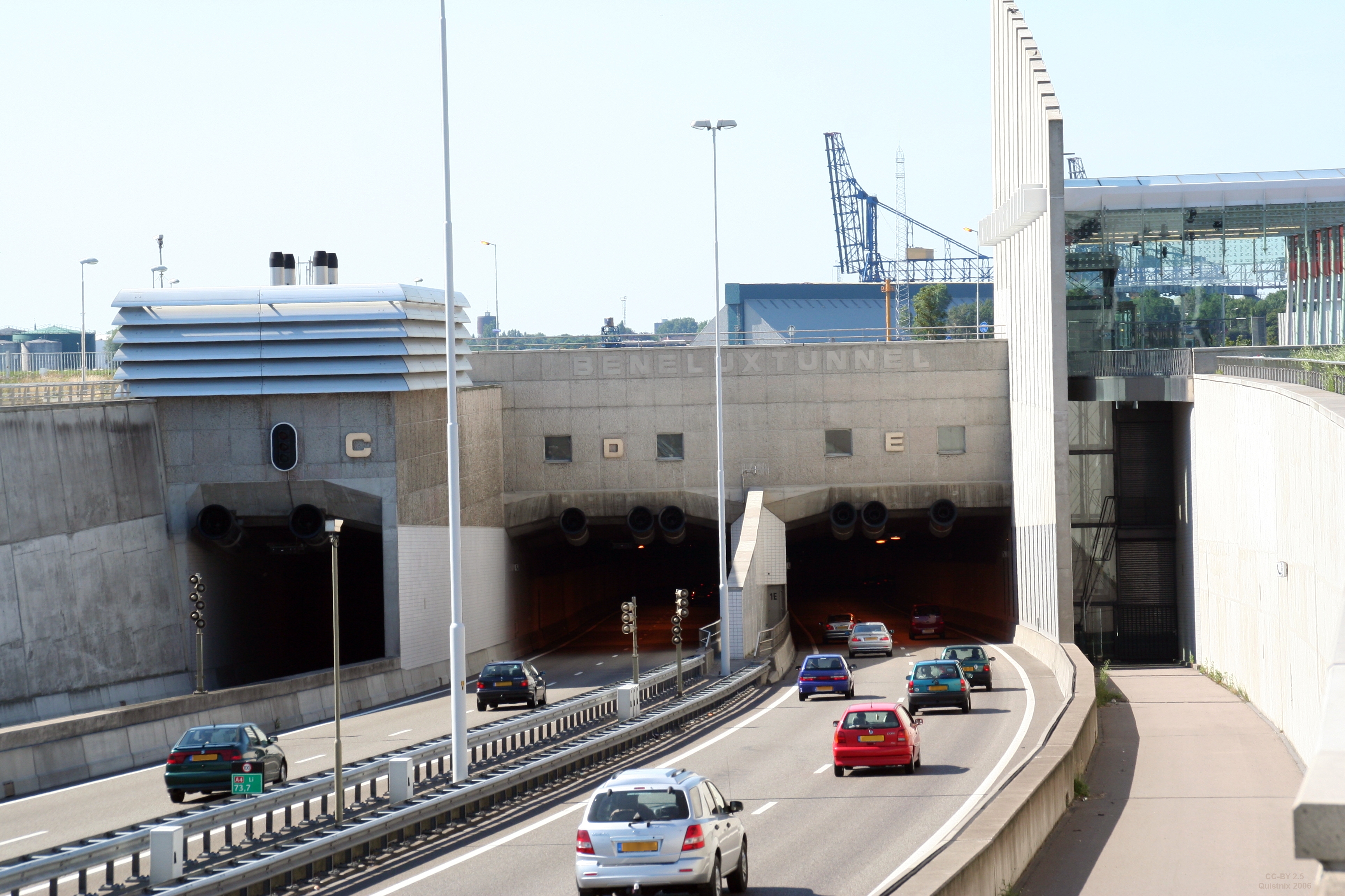 - 2006-07-08 21:45 Quistnix 3456×2304×8 (3595878 bytes) Beneluxtunnel, gezien vanaf de zuidkant. Het gedeelte op de foto is het "nieuwe" tunneldeel met daarin de buizen C t/m E. Rechts in beeld is het metrostation Beneluxtunnel-Zuid. Eigen foto.
