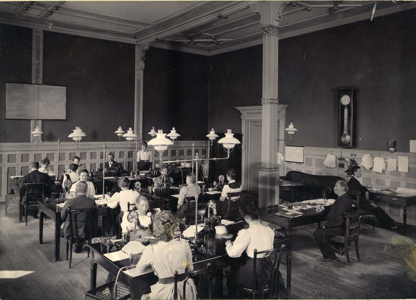 | Description | Personalet bestod av 40 telegrafbetjenter, mange av dem var kvinner. Fotograf ukjent. Fra arkivet etter Televerket (Arkivref.: S-4820U6_1819) |
