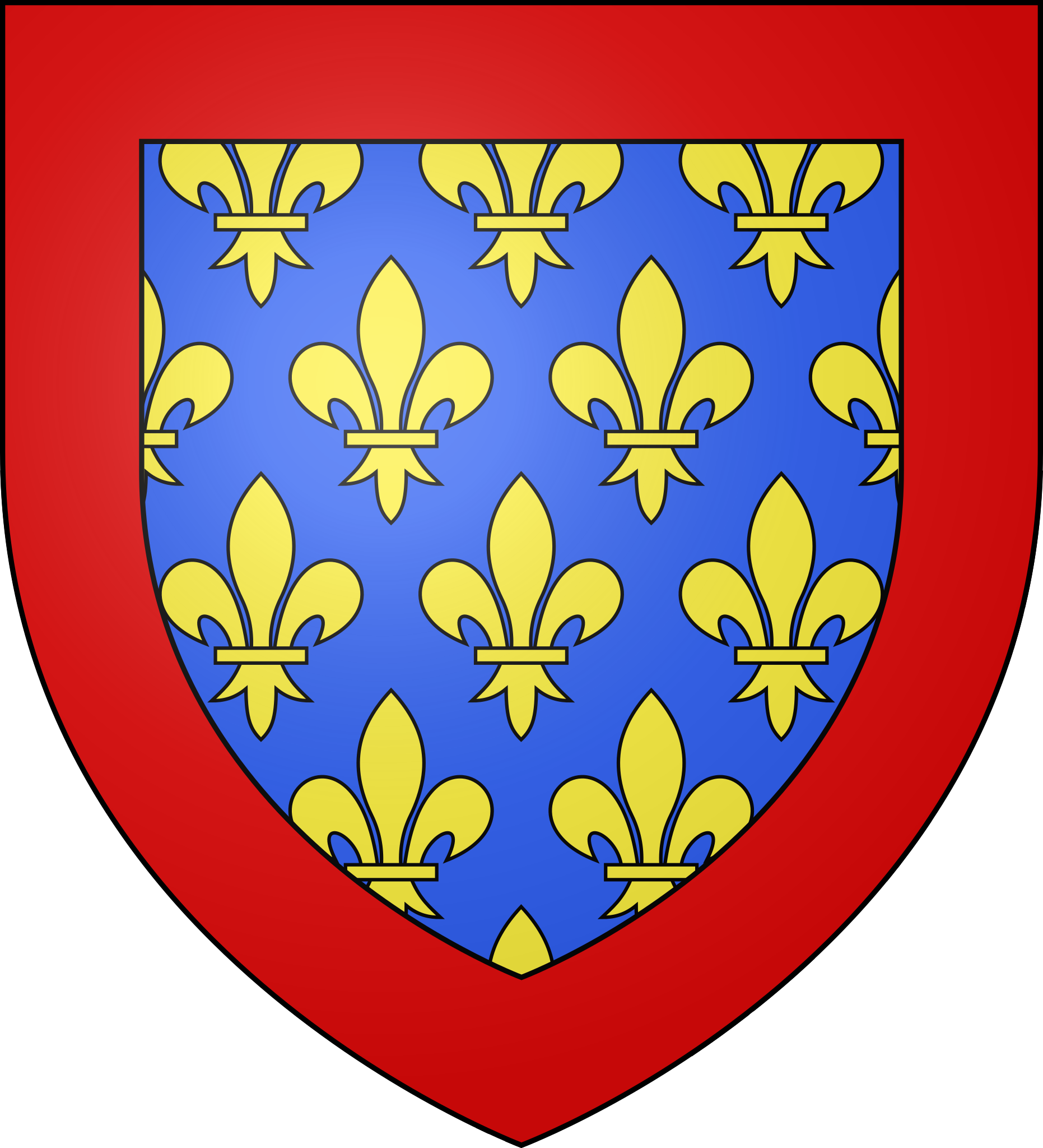 | Description | Blason du comté de Valois : D'azur semé de fleurs de lys d'or à la bordure de gueules |