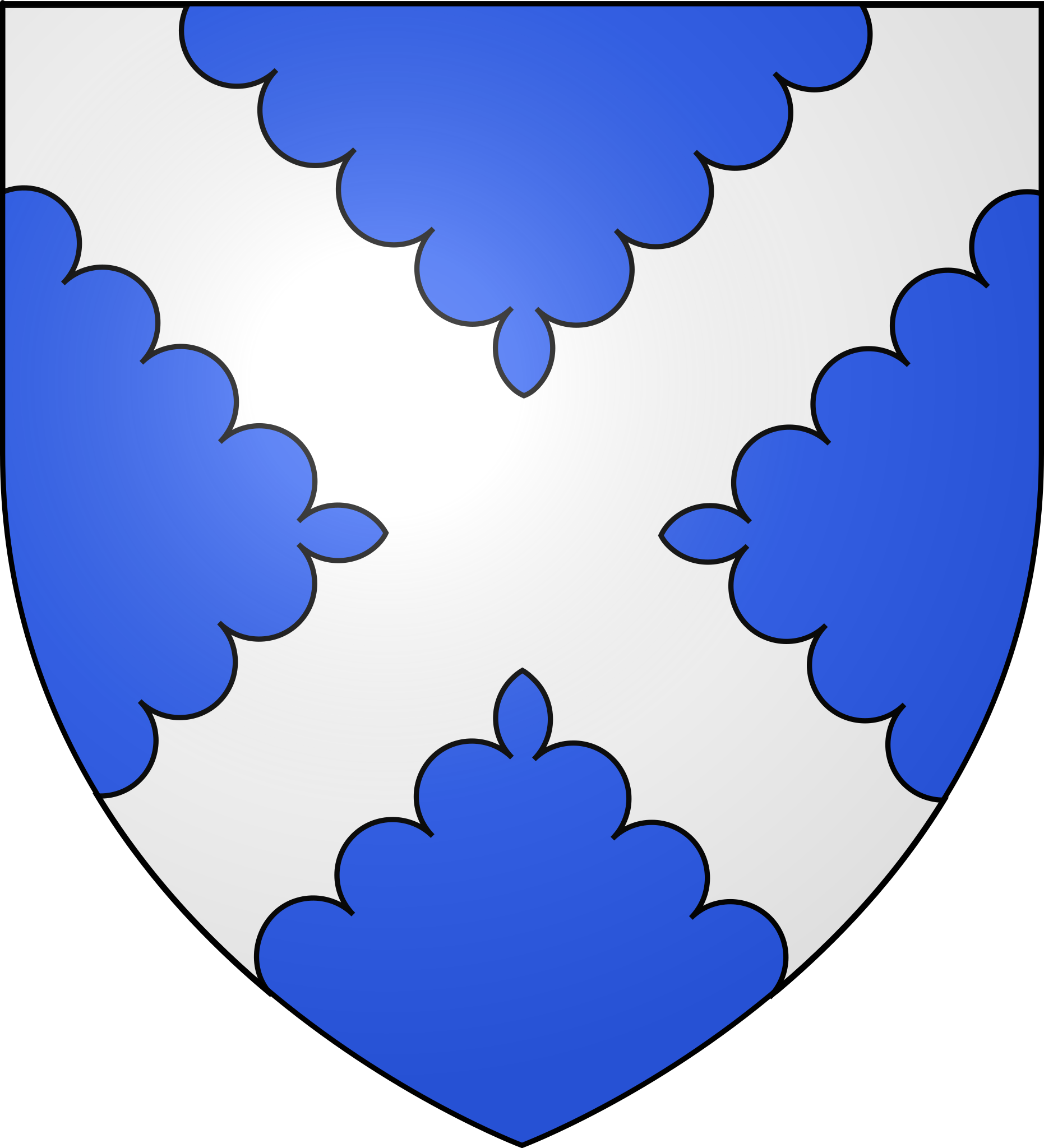 Français : D'azur au sautoir engreslé d'argent.