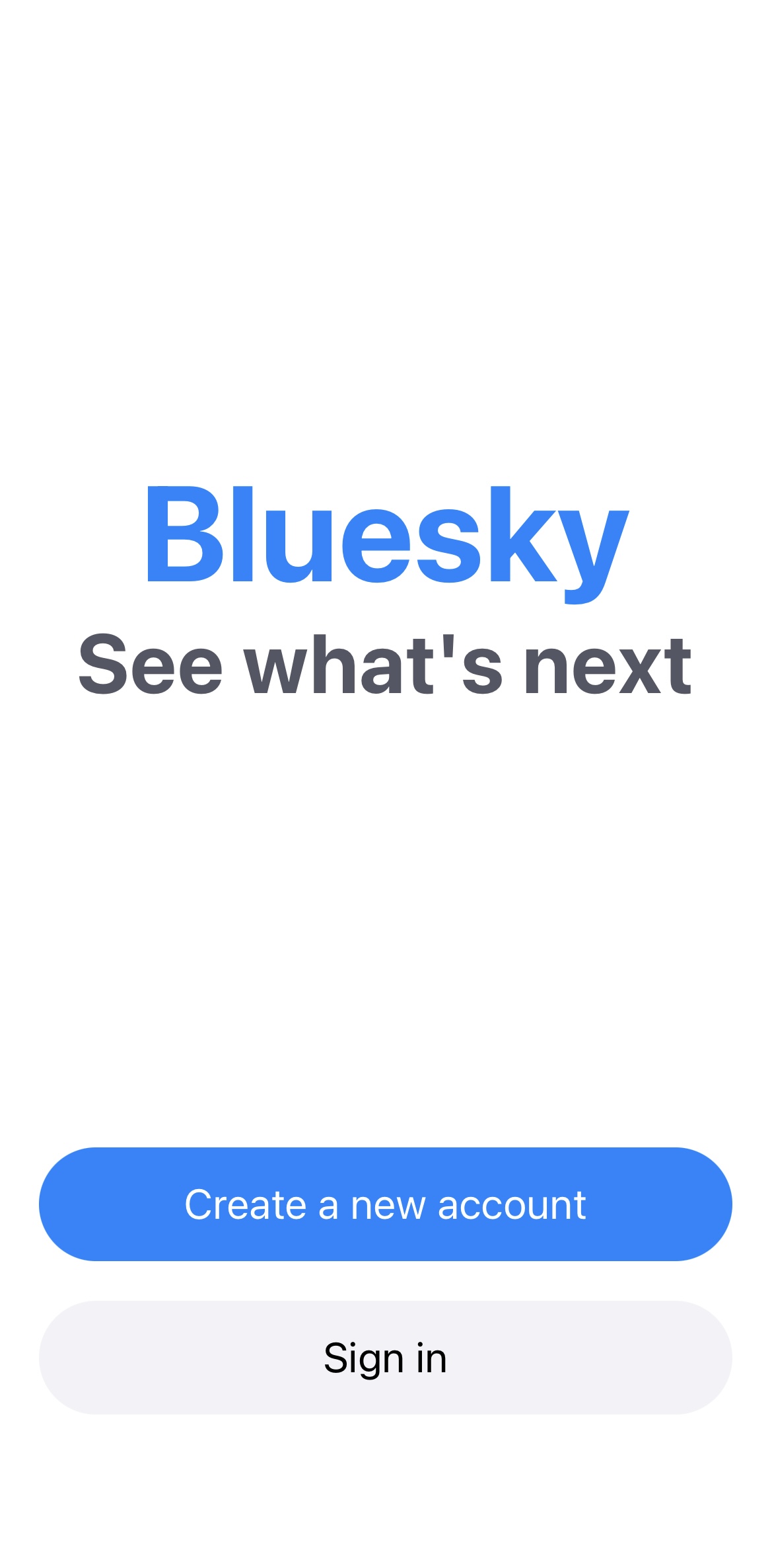 English: Bluesky Social iOS App Landing Screen |
