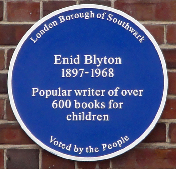 English: Blue plaque for Enid Blyton near Dulwich Library. |