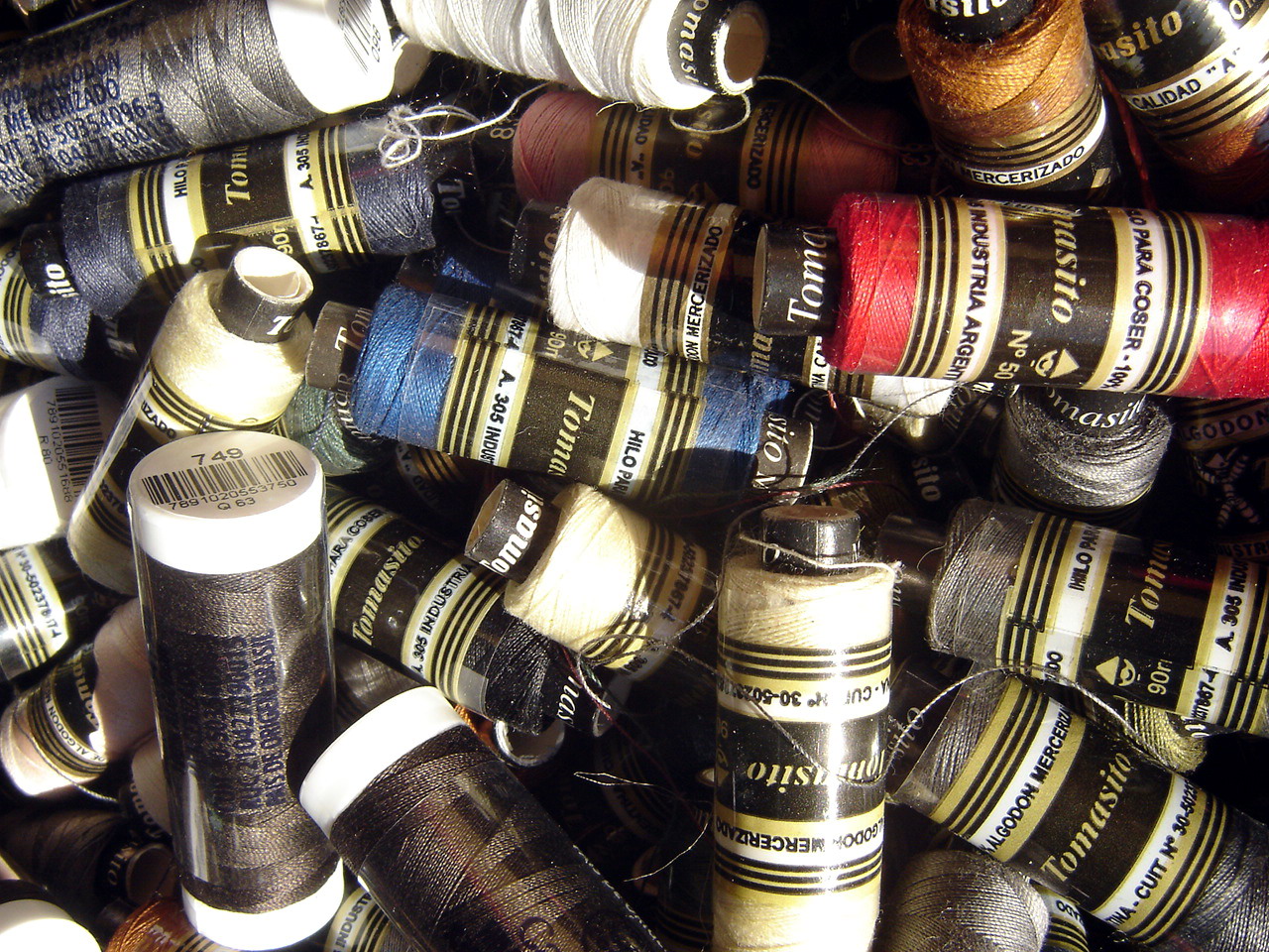 ملف:Bobinas de hilo de algodón mercerizado - Cotton thread reels.jpg
