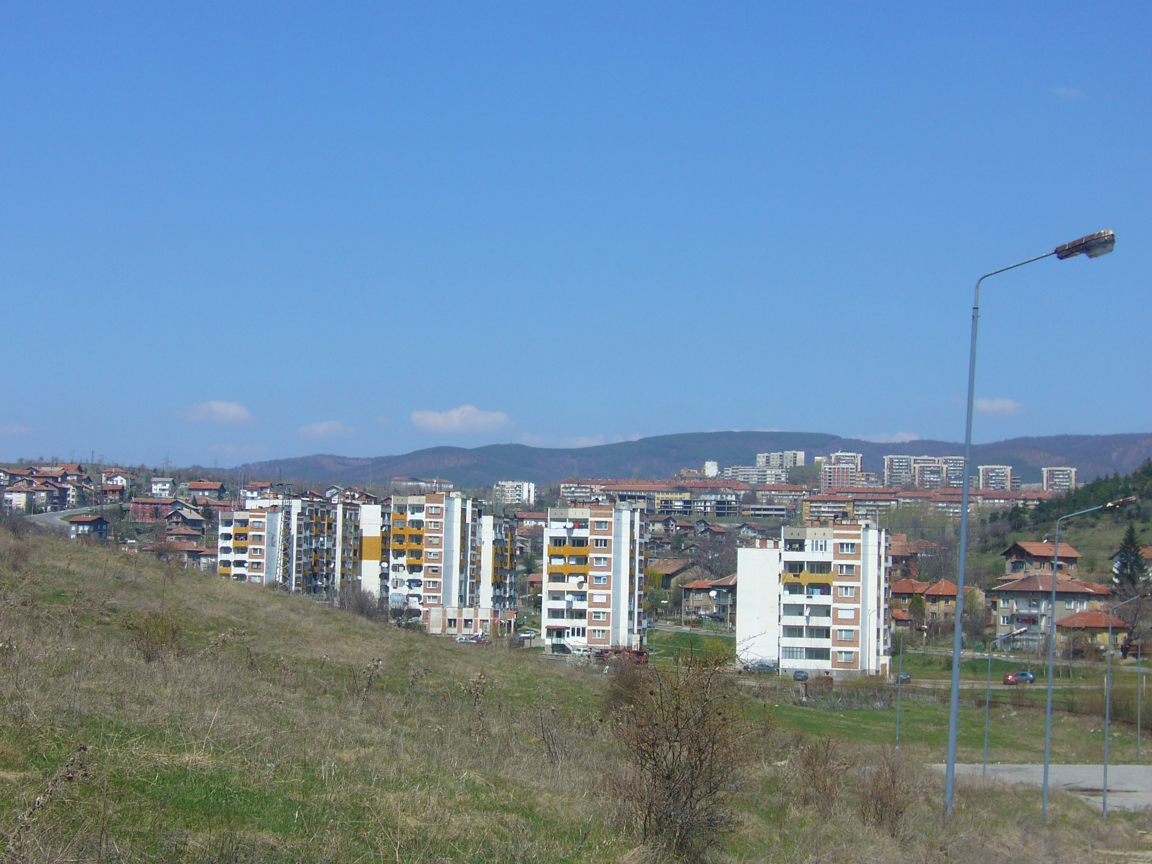 English: View at Dzhelyova Mahala housing estate and part of Minyor housing estate. Bobov dol, Bulgaria |