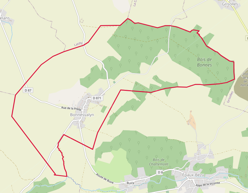 Français : Carte OSM de Bonnesvalyn, Aisne |