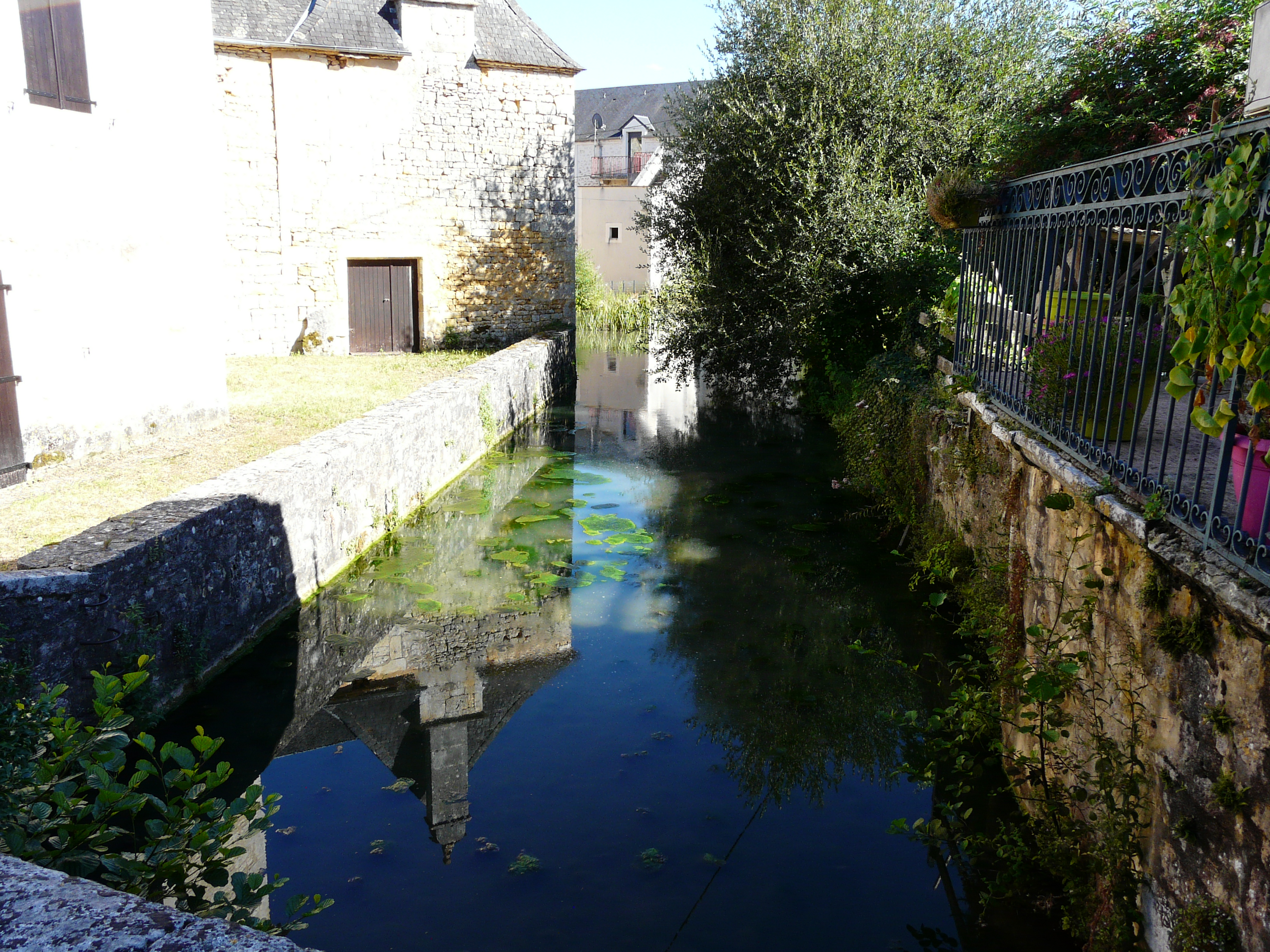 Français : La Borrèze dans le bourg de Borrèze, Dordogne, France. Vue prise en direction de l'aval. |