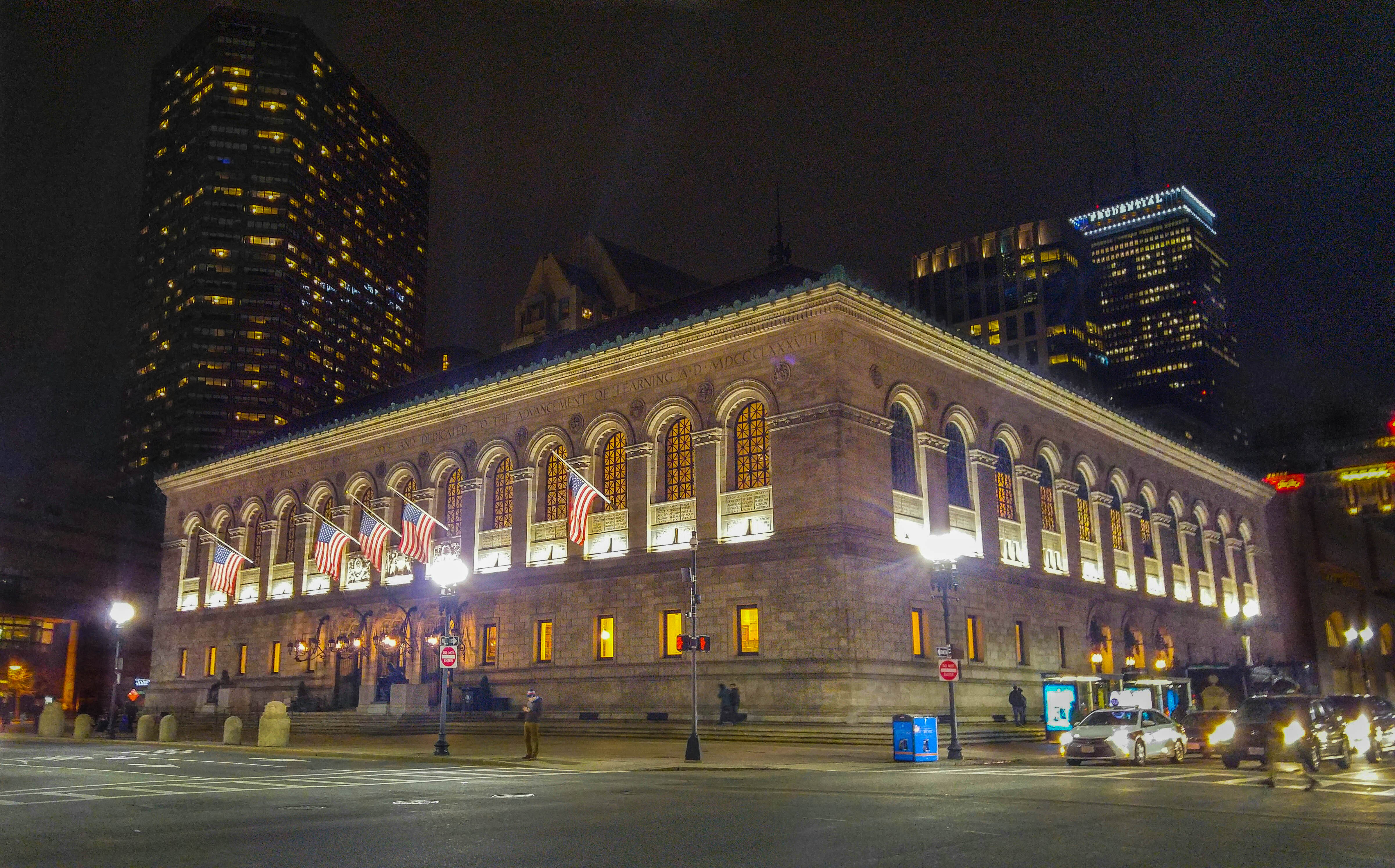 ملف:Boston Public Library's McKim Building at Night.jpg