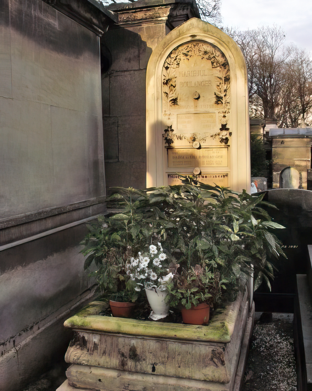 English: Grave of Lili, Nadia and Raïssa Boulanger - Montmartre Cemetery - Paris. Located close to the entrance of the cemetery, in the south-west corner of section 33 where Avenue Saint-Charles and Chemin Billaud intersect.