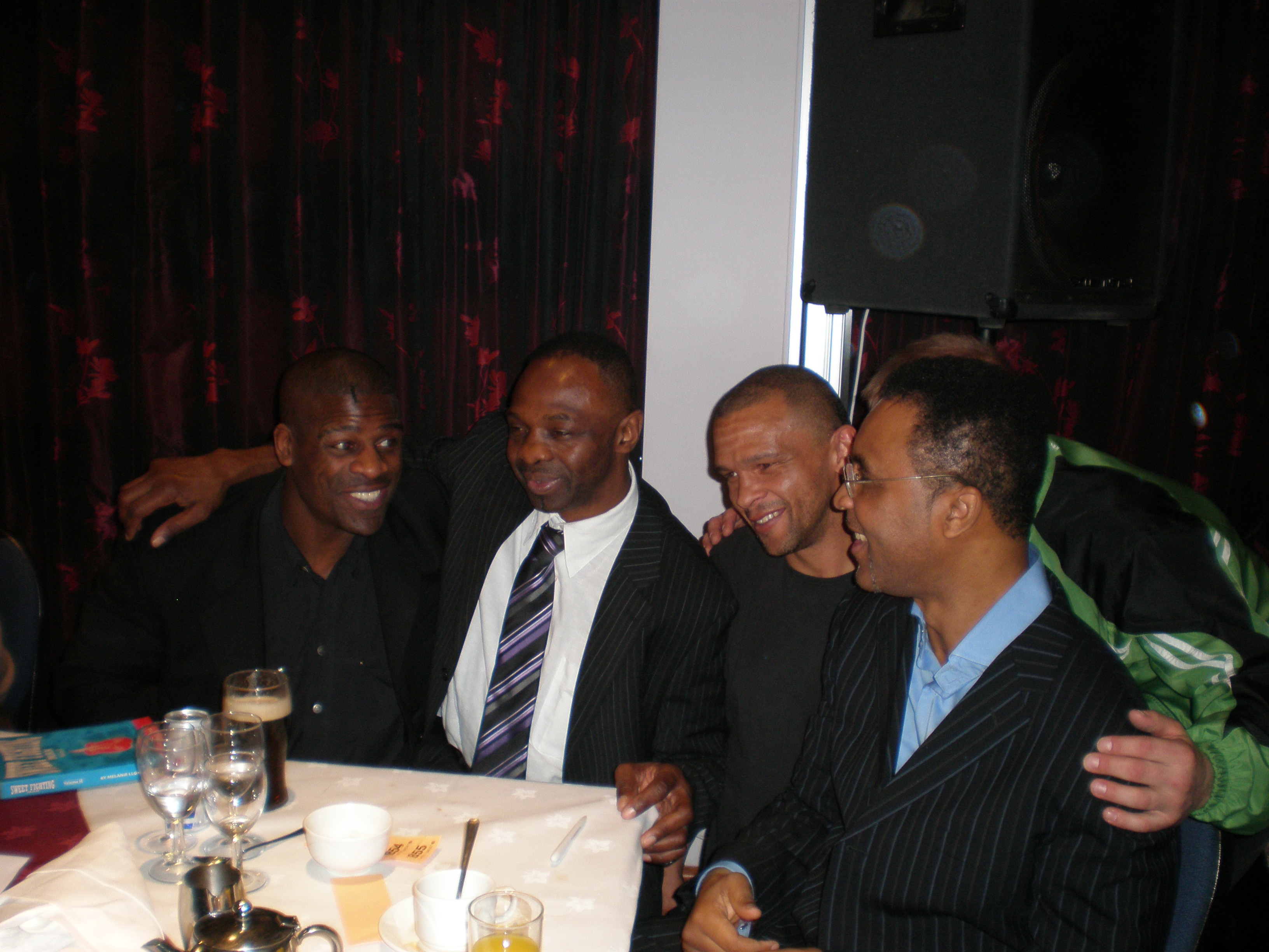English: Chris Pyatt (second right) with veteran boxers Errol Christie (left), James Cook and Michael Watson (right) in February 2008 |