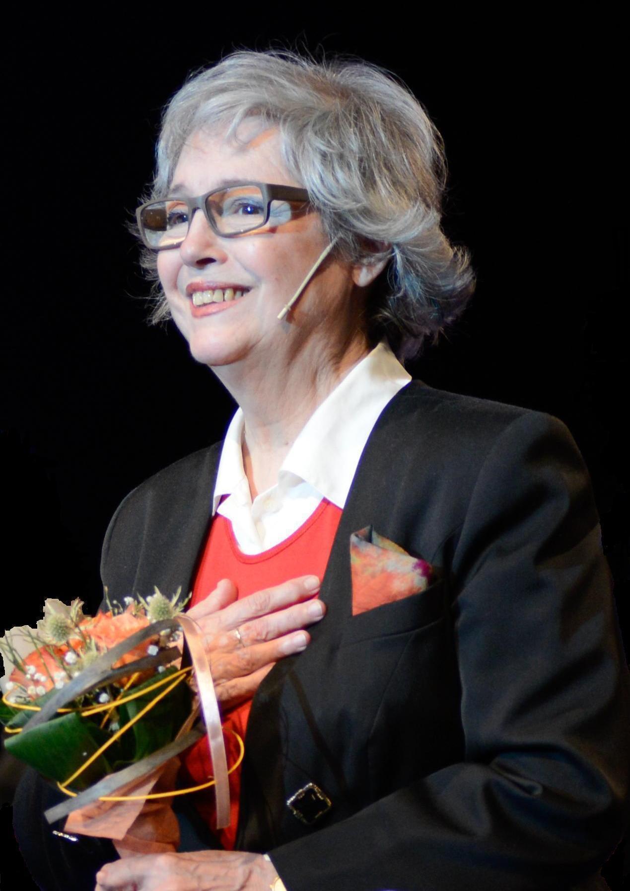 English: Slovak actress Božidara Turzonovová during Vitajte doma, a talk show presented live at the Žilina City Theater, Slovakia, photographed by Eduard Kudláč, using NikonD600. |
