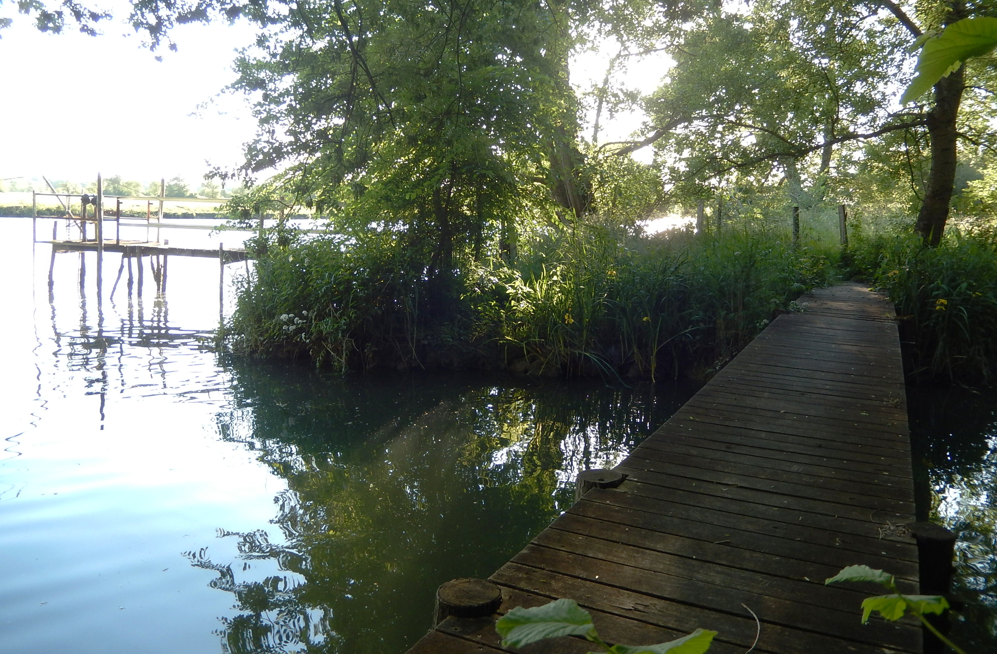Français : La rivière Bramerit, à l'endroit où elle se jette dans le fleuve Charente, derrière le château de Coulonge (commune de Saint-Savinien, Charente-Maritime, France). |