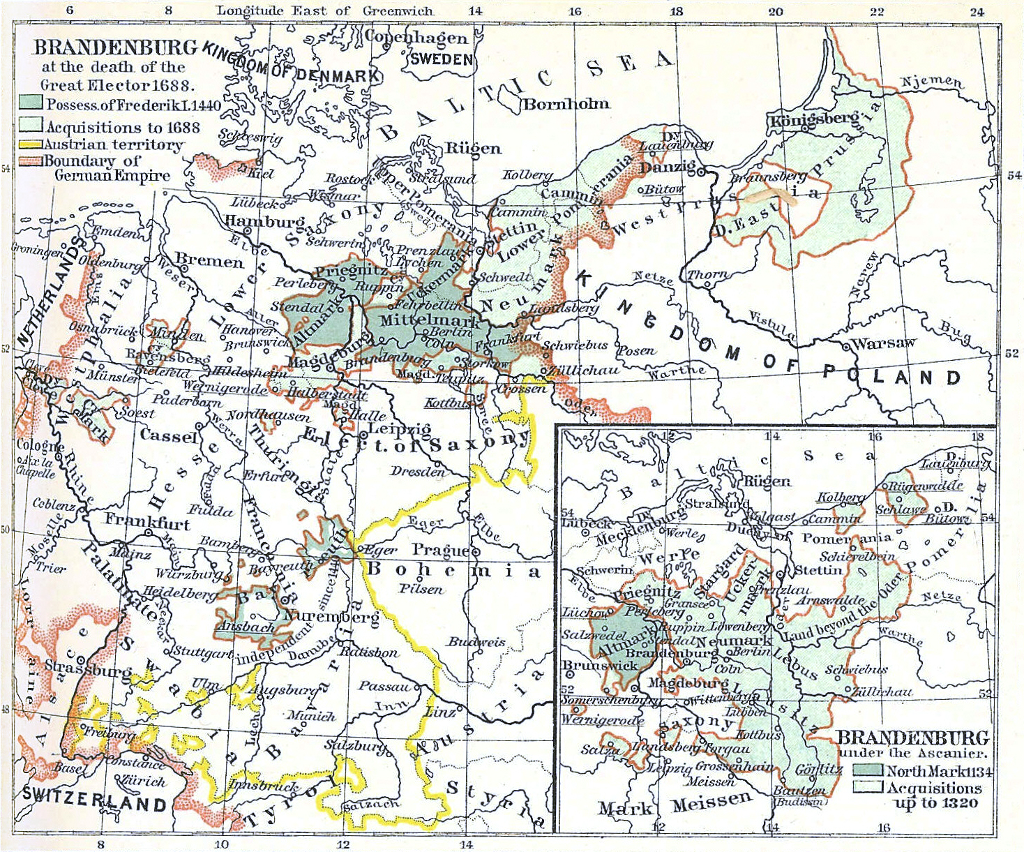 | Description | Upper map of two about The Development of Brandenburg to a Prussian Power |
