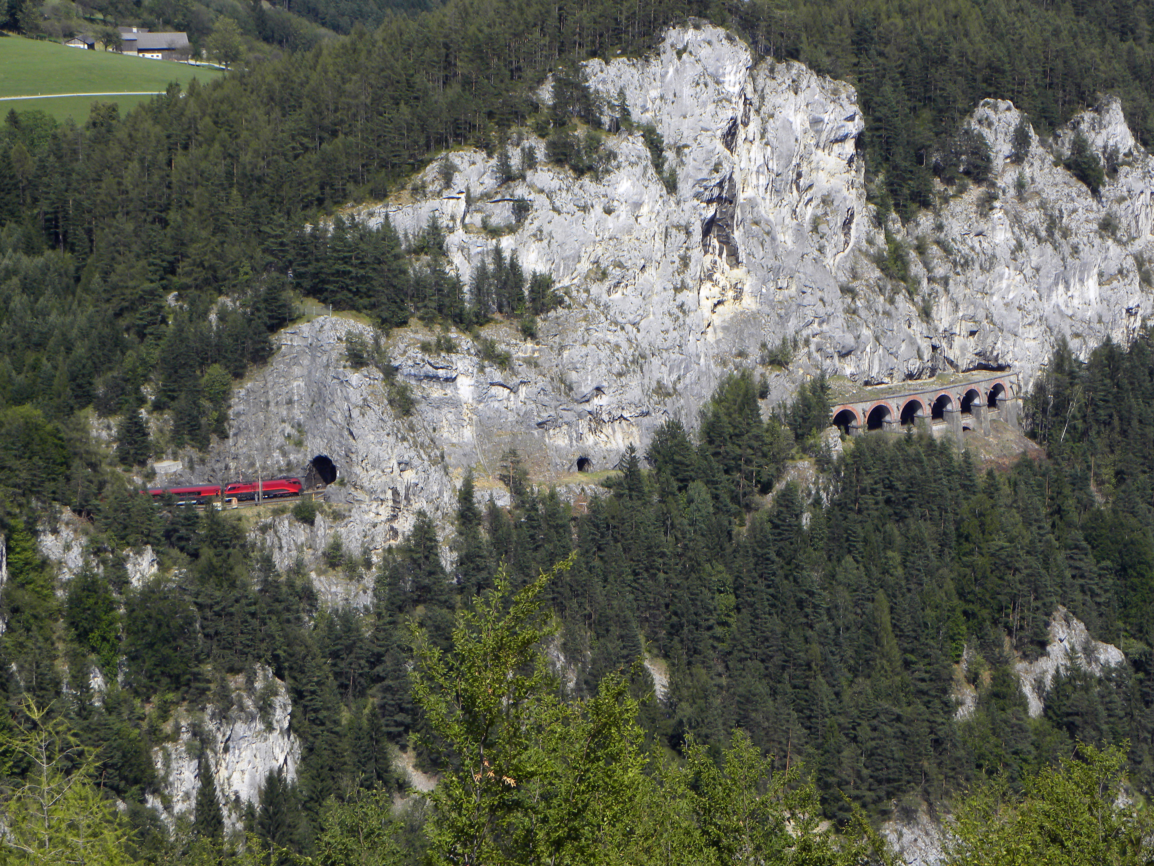 ملف:Breitenstein - Semmeringbahn - Weinzettlwand mit Railjet.jpg
