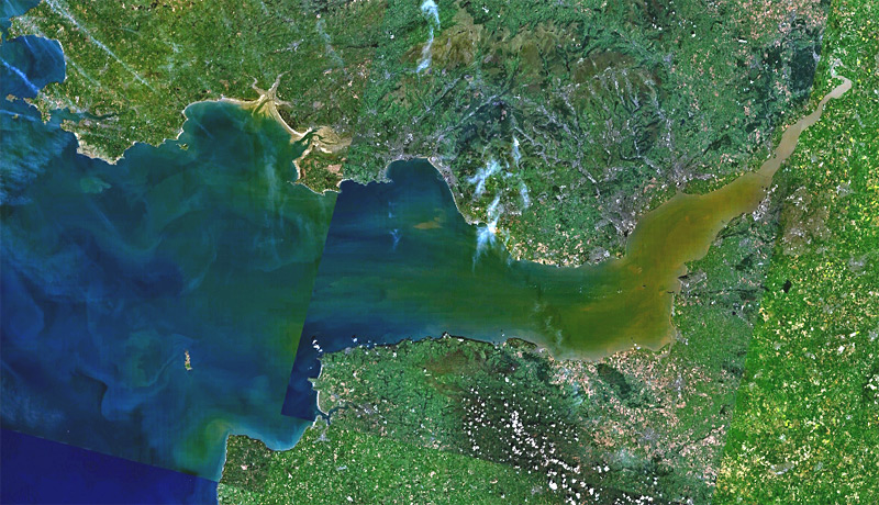 مصدر الصورة http://en.wikipedia.org/wiki/Image:Bristol_channel_landsat7.jpg