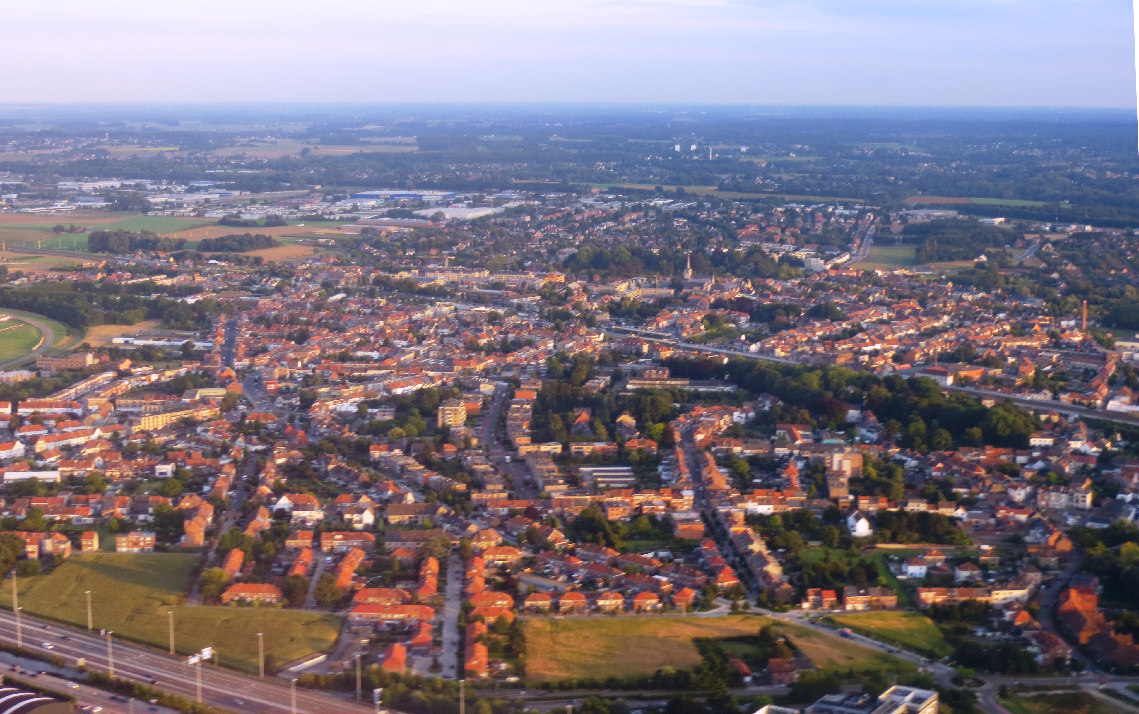 English: Aerial view over the Zaventeem area of northern Brussels, around the Brussels airport. Belgium. |