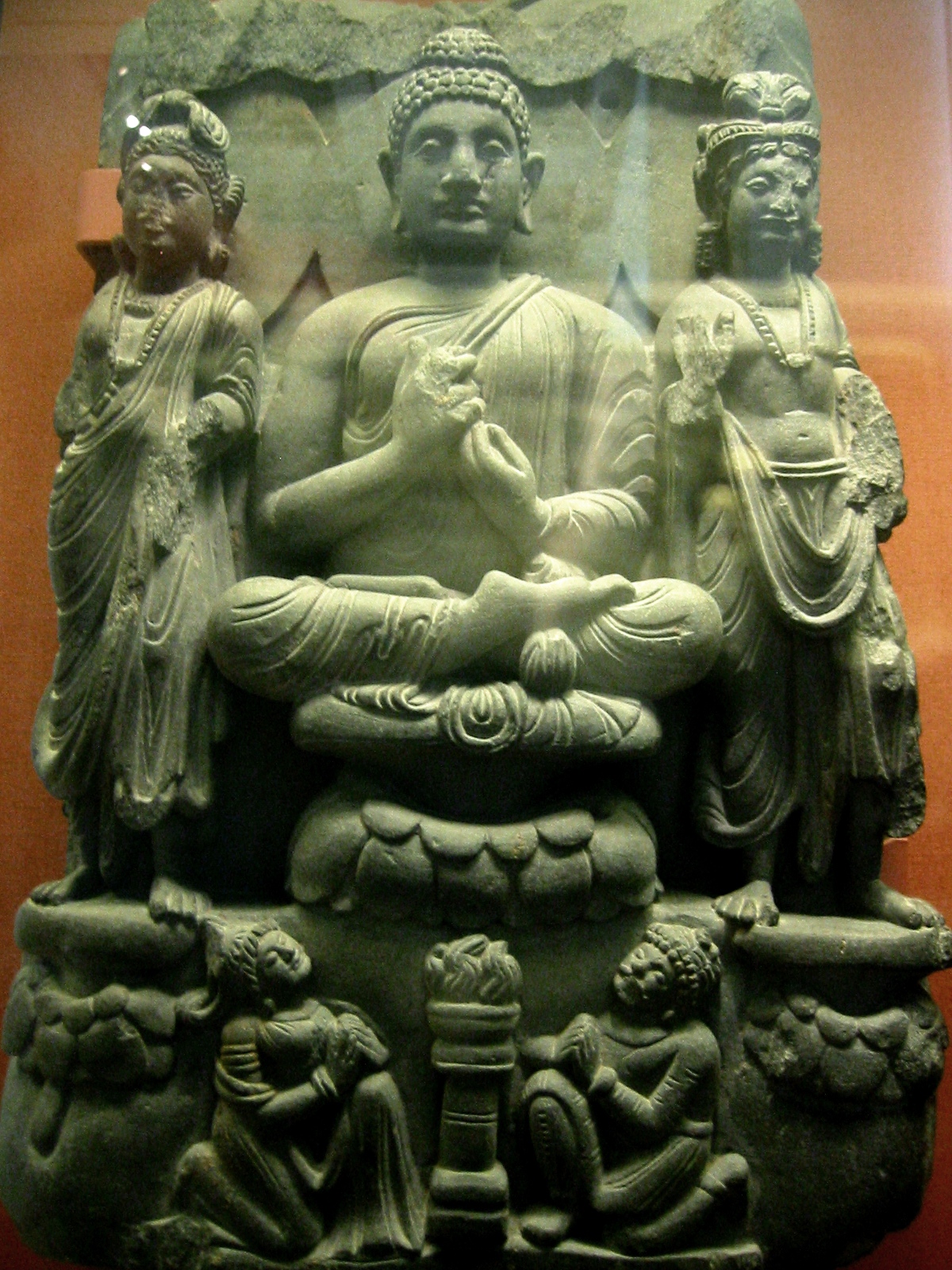 ملف:BuddhaTriadAndKushanCouple.JPG