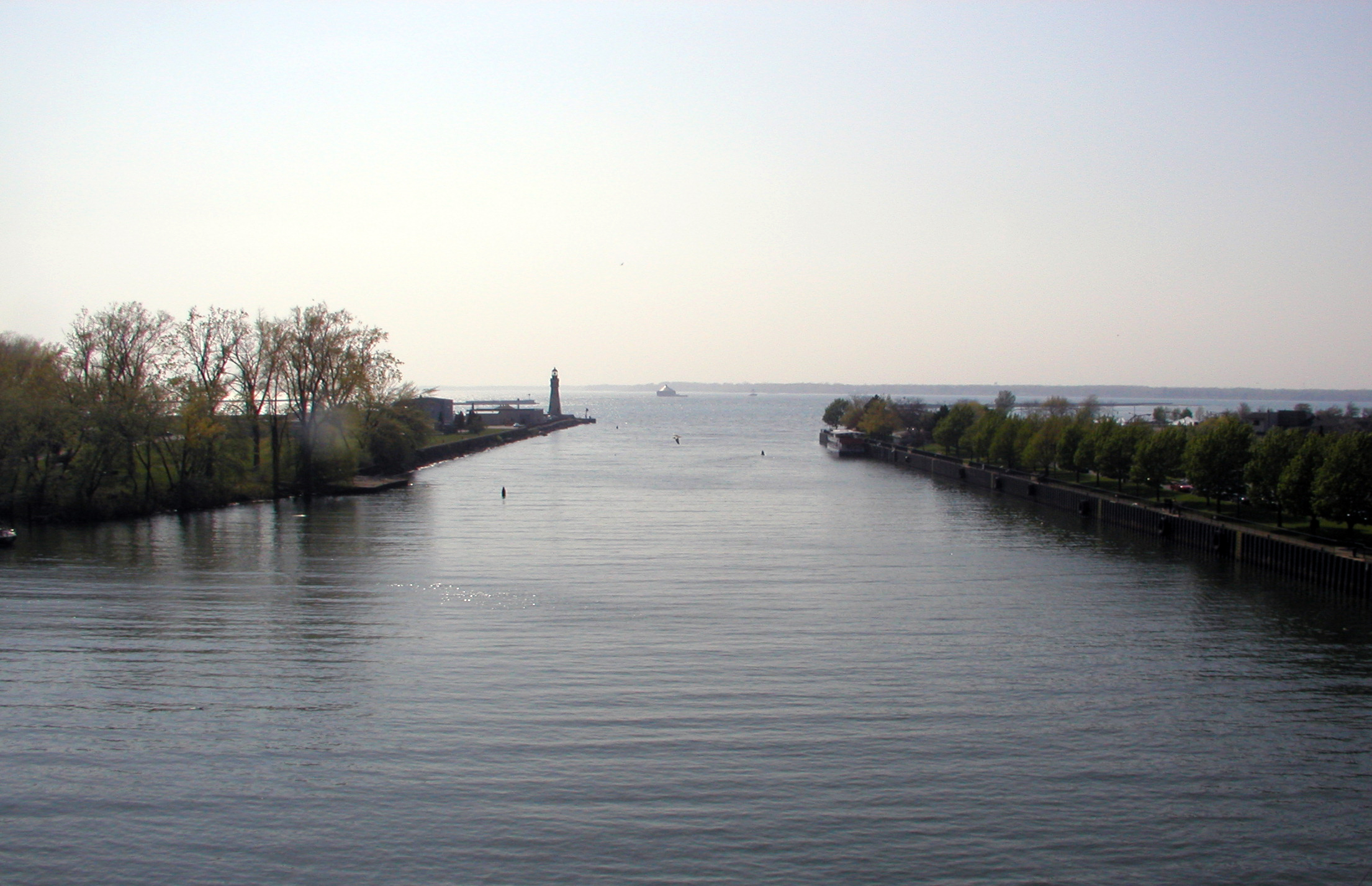 w:Buffalo River (New York) at its mouth looking out to Lake Eriew:Lake Erie. Buffalo Coast Guard Station is on the left, including w:Buffalo (main) Light. |