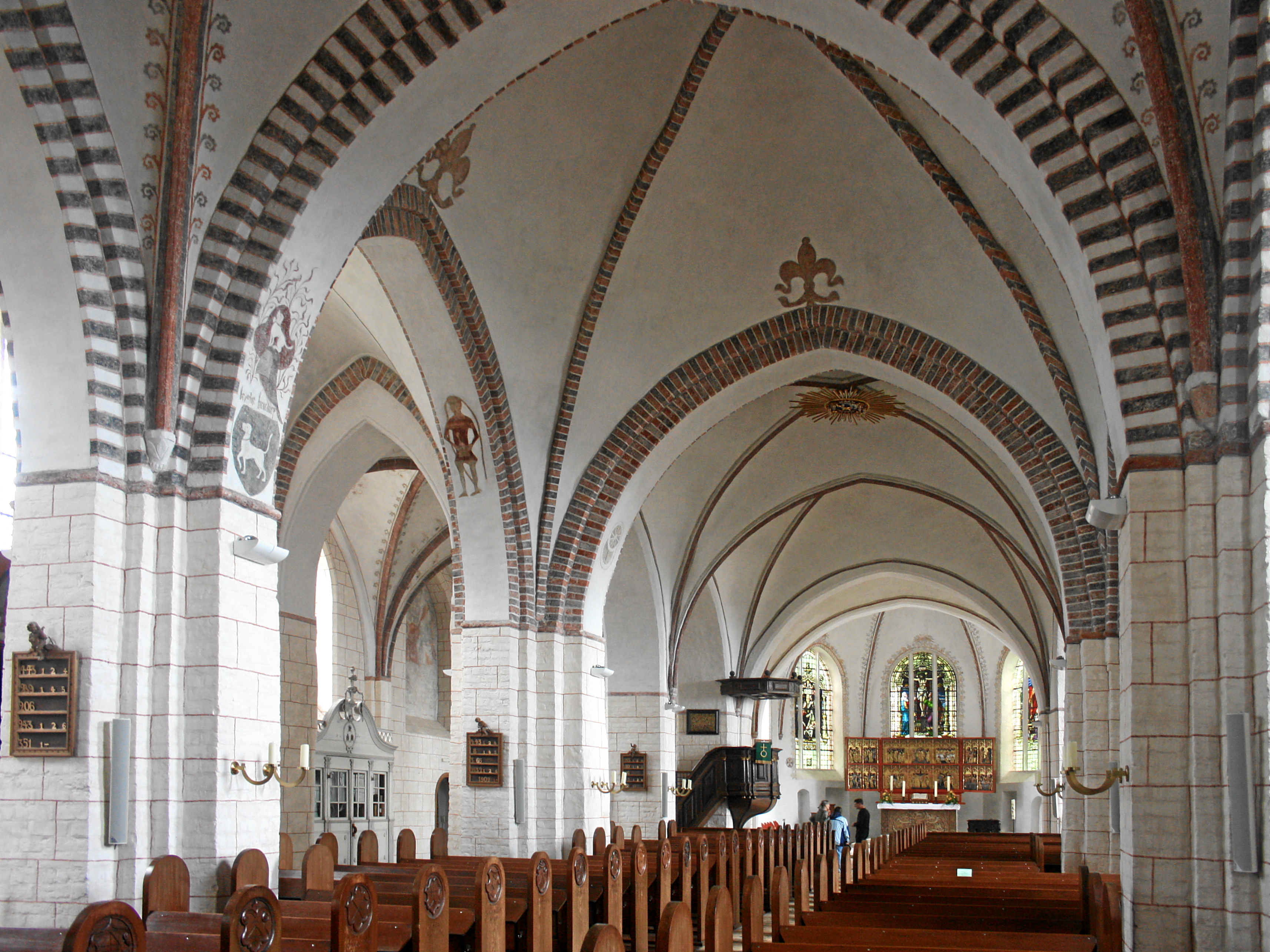 Deutsch: Fehmarn, Deutschland. Protestantische Gemeindekirche St. Nikolai, Kirchenschiff nach Ost. |