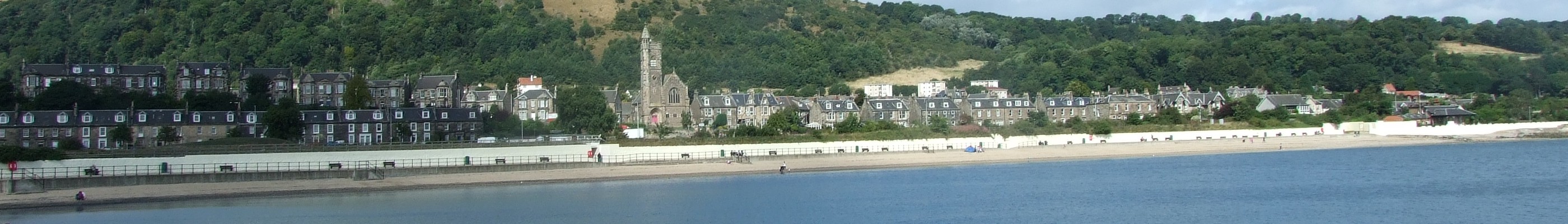 English: Burntisland seen from outside the Beacon Leisure Centre, looking over the links towards some Victorian villas. Own photo cropped to create a Wikivoyage banner. |