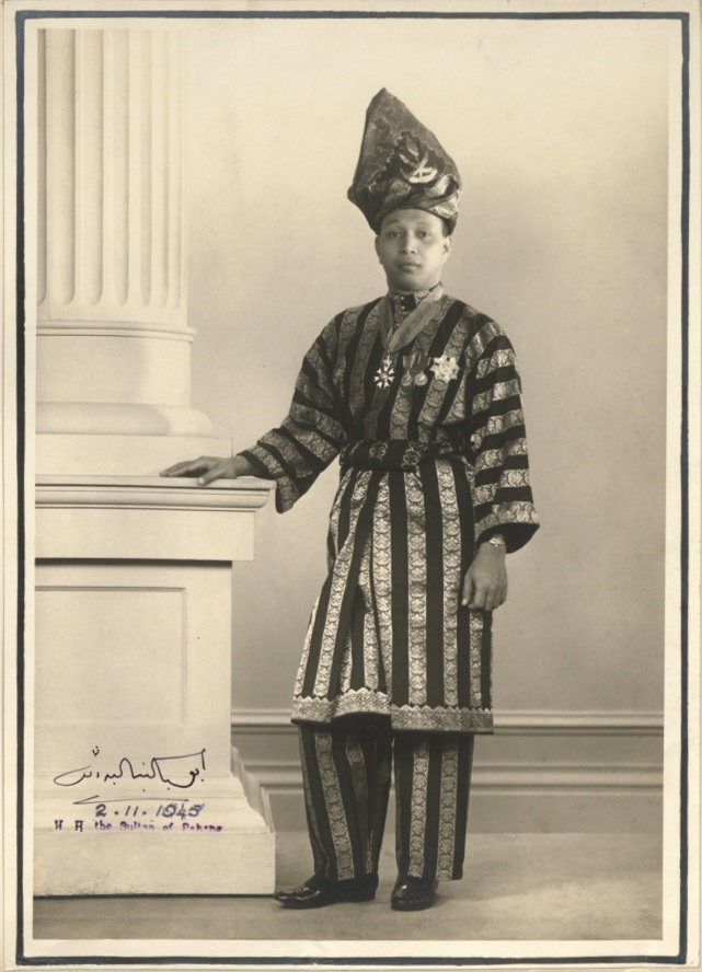 English: Description: H H the Sultan of Pahang, 2.11.1945 Date: 02 November 1945 Our Catalogue Reference: Part of CO 1069/501. This image is part of the Colonial Office photographic collection held at The National Archives. Feel free to share it within the spirit of the Commons. Please use the comments section below the pictures to share any information you have about the people, places or events shown. We have attempted to provide place information for the images automatically but our software may not have found the correct location. For high quality reproductions of any item from our collection please contact our image library |