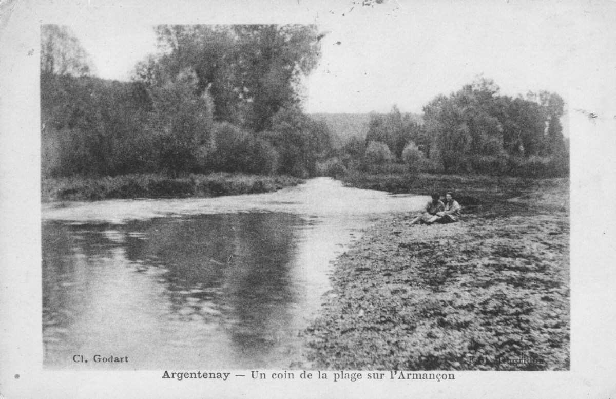 ملف:CP Argentenay Un coin de la plage sur l'Armançon.jpg