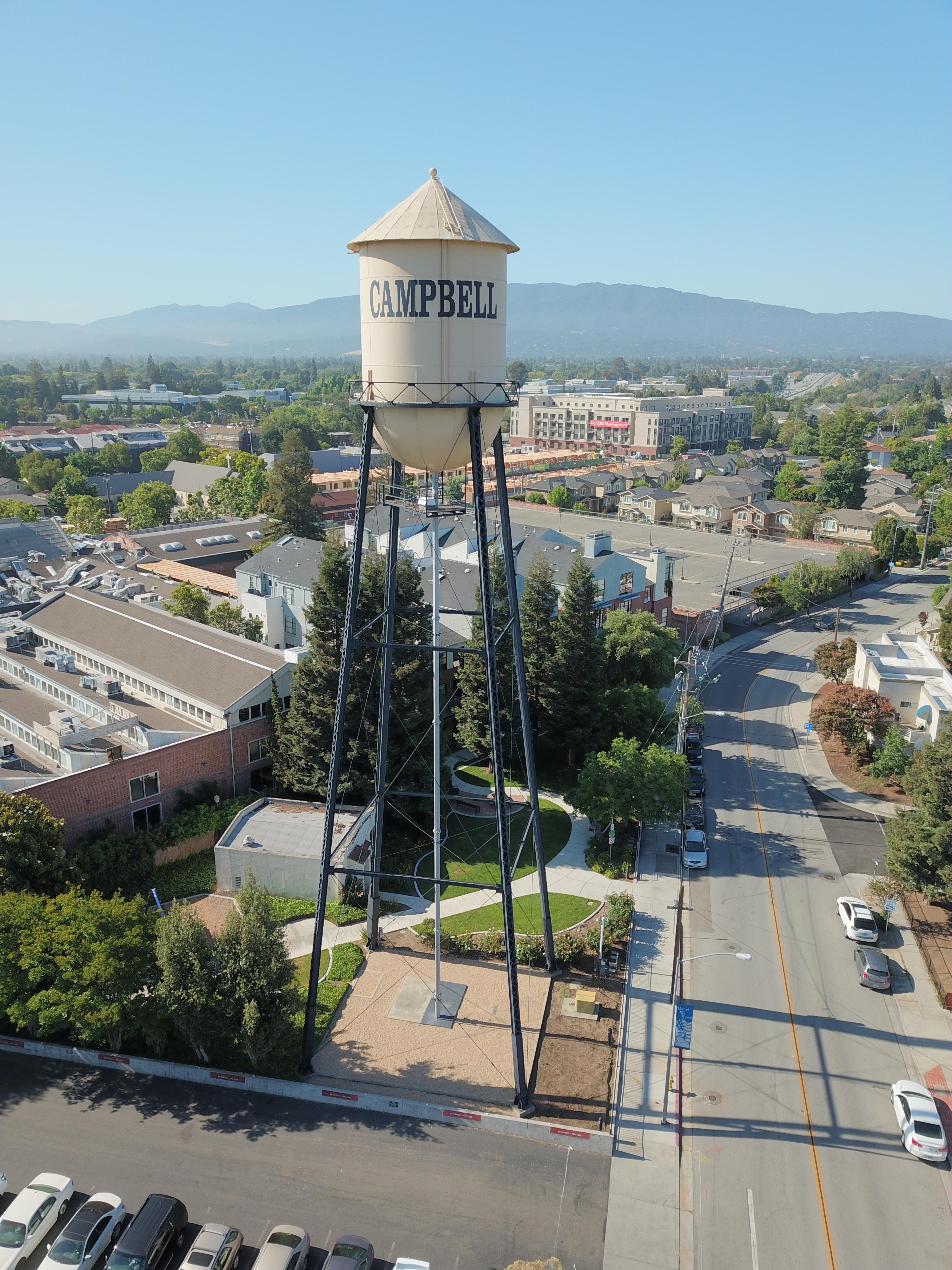 | Description | The water tower in downtown Campbell, California, as seen from a drone 36 meters above the ground. |