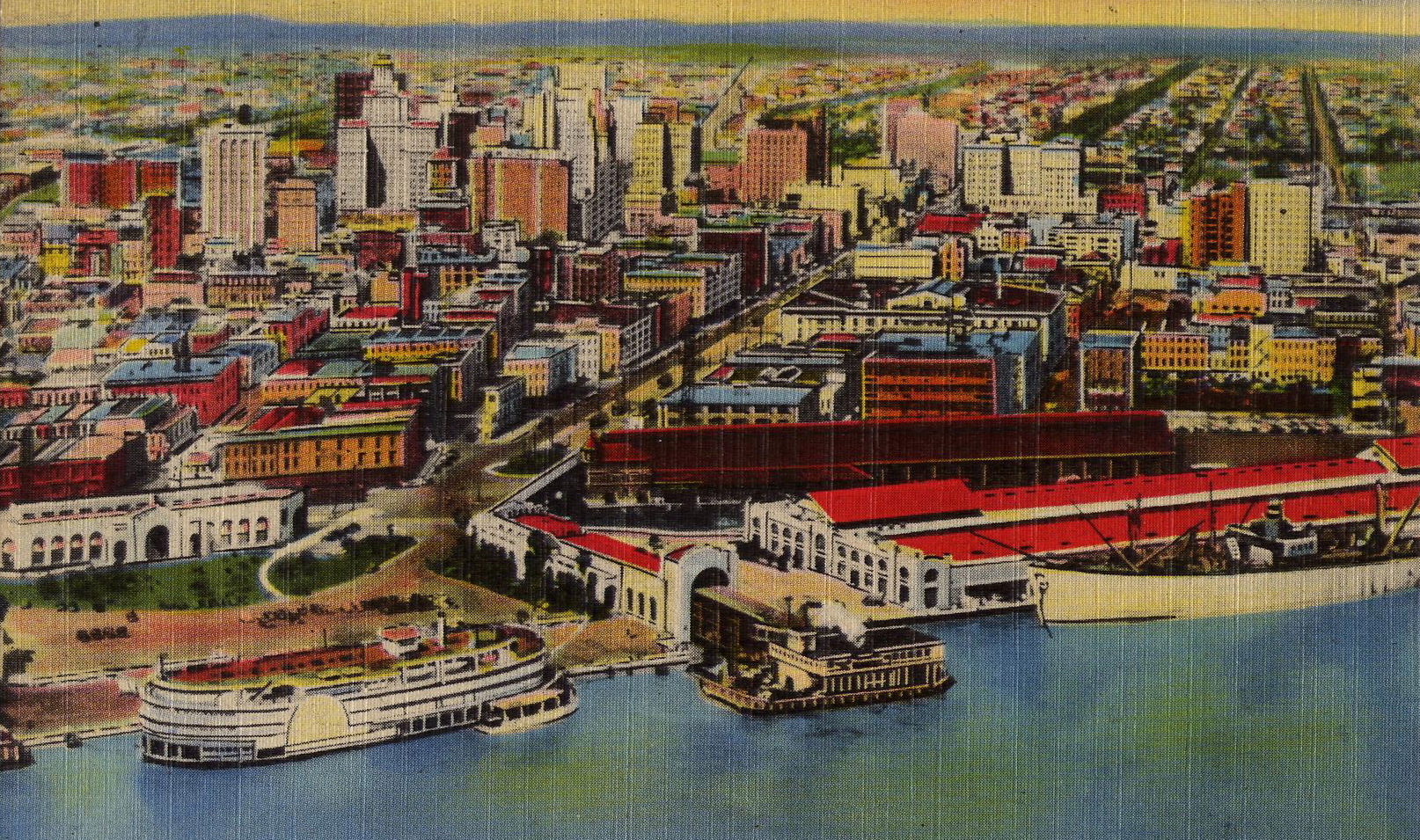 | Date | Not dated. Sometime between mid 1920s and mid 1940s. Someone with might be able to narrow it down further by date of skyscrapers that are seen or missing. | ||