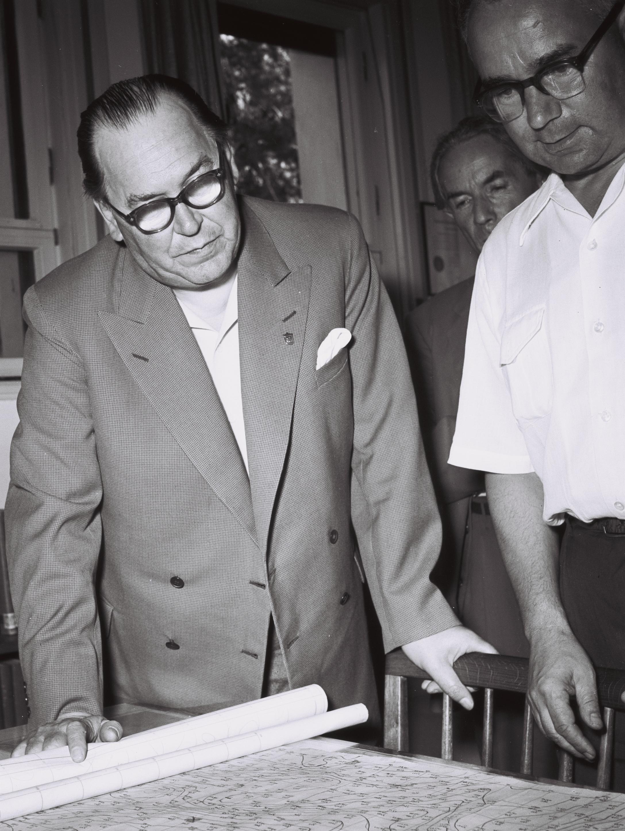 English: Karl-August Fagerholm, speaker of the Finish Parliament, during a visit to Weizmann Institute of Science, in Rehovot, Israel. September, 1955. |