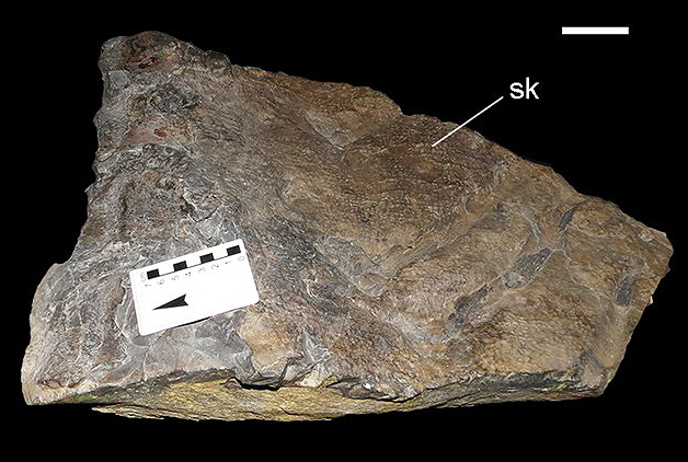 | Description | Caudal skin impression of Carnotaurus (MACN-CH 894). Scale bar: 5 cm. |