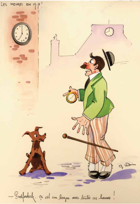 Français : Les heures en 1917! Podferdeck, ça c'est un bazar avec toutes ces heures! (A.V.B., Collection Keym, 44/47) |