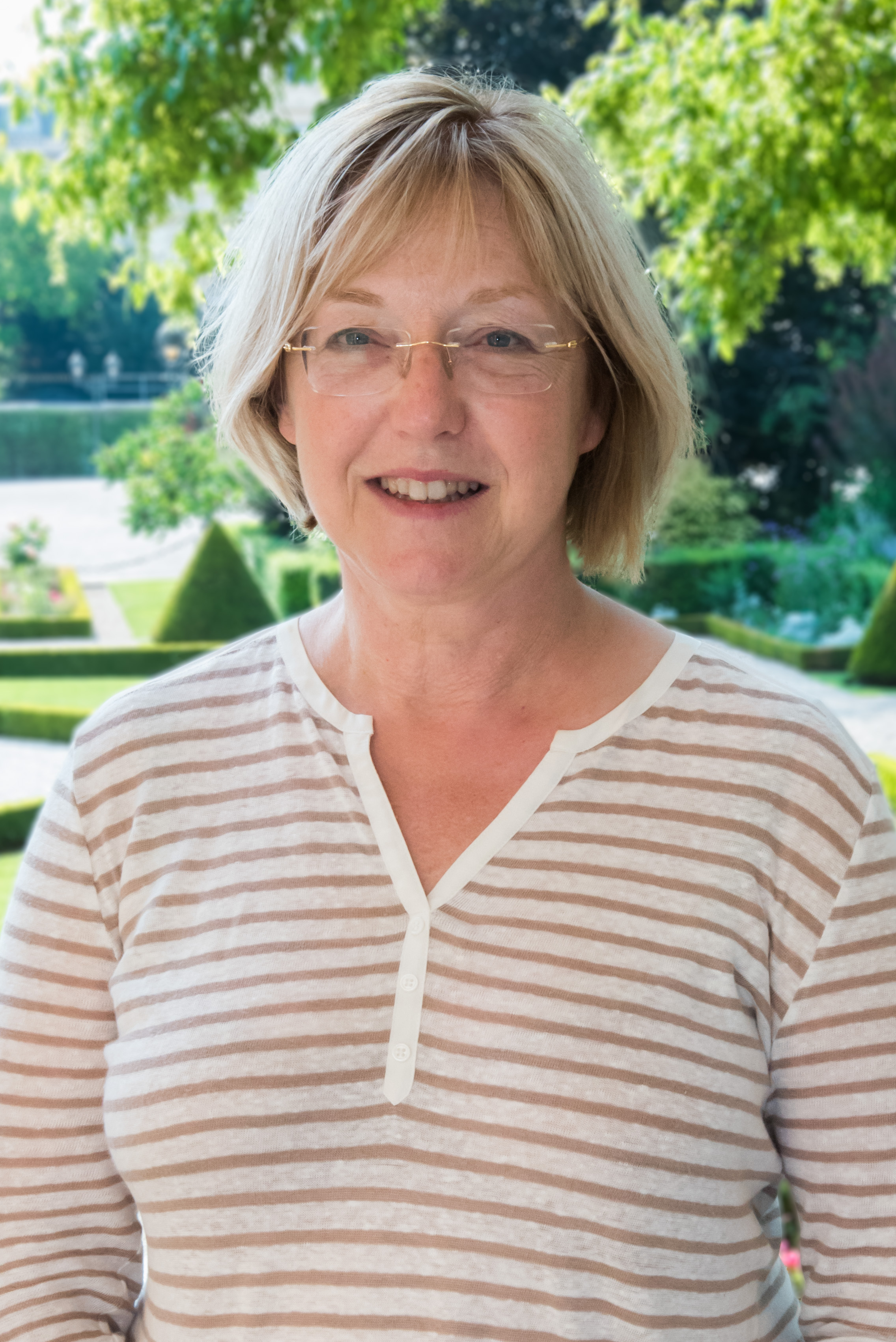Français : Catherine Kamowski dans le jardin des Quatre colonnes du palais Bourbon.