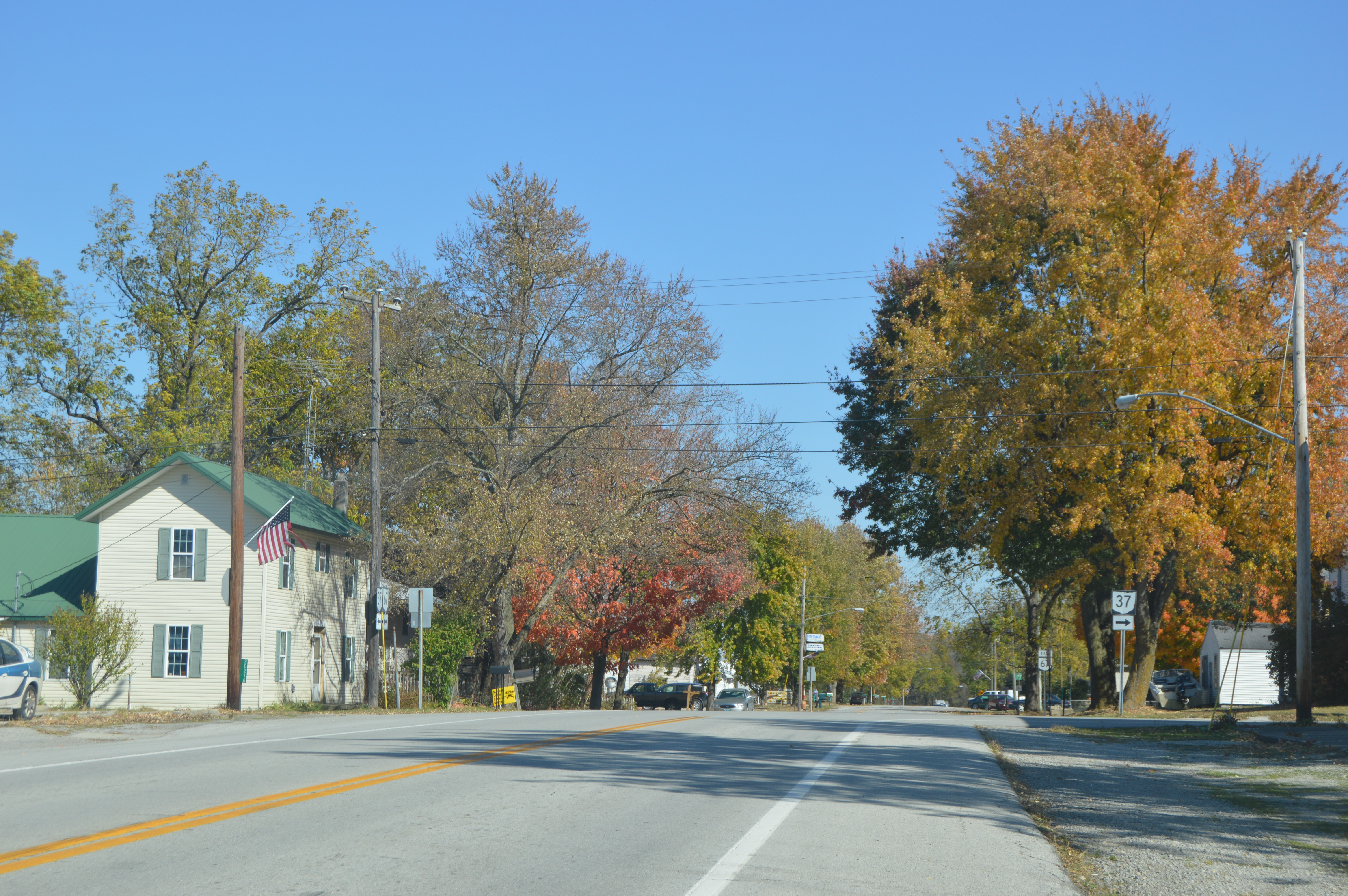 English: Looking eastward on Main Street (Ohio State Route 67) toward the Center Street (State Route 37) intersection in Marseilles, Ohio, United States. |