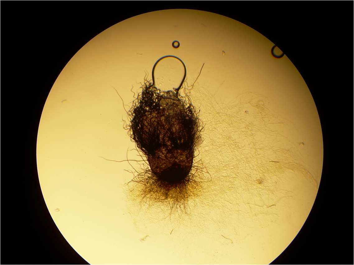 English: Chaetomium (anamorph: Acremonium) perithecium magnified 40X. Identified using Hanlin, R. T. (2001) Illustrated Genera of Ascomycetes, Volume I. APS Press: St. Paul, MN; pp. 101–2 ISBN 0-89054-107-8.