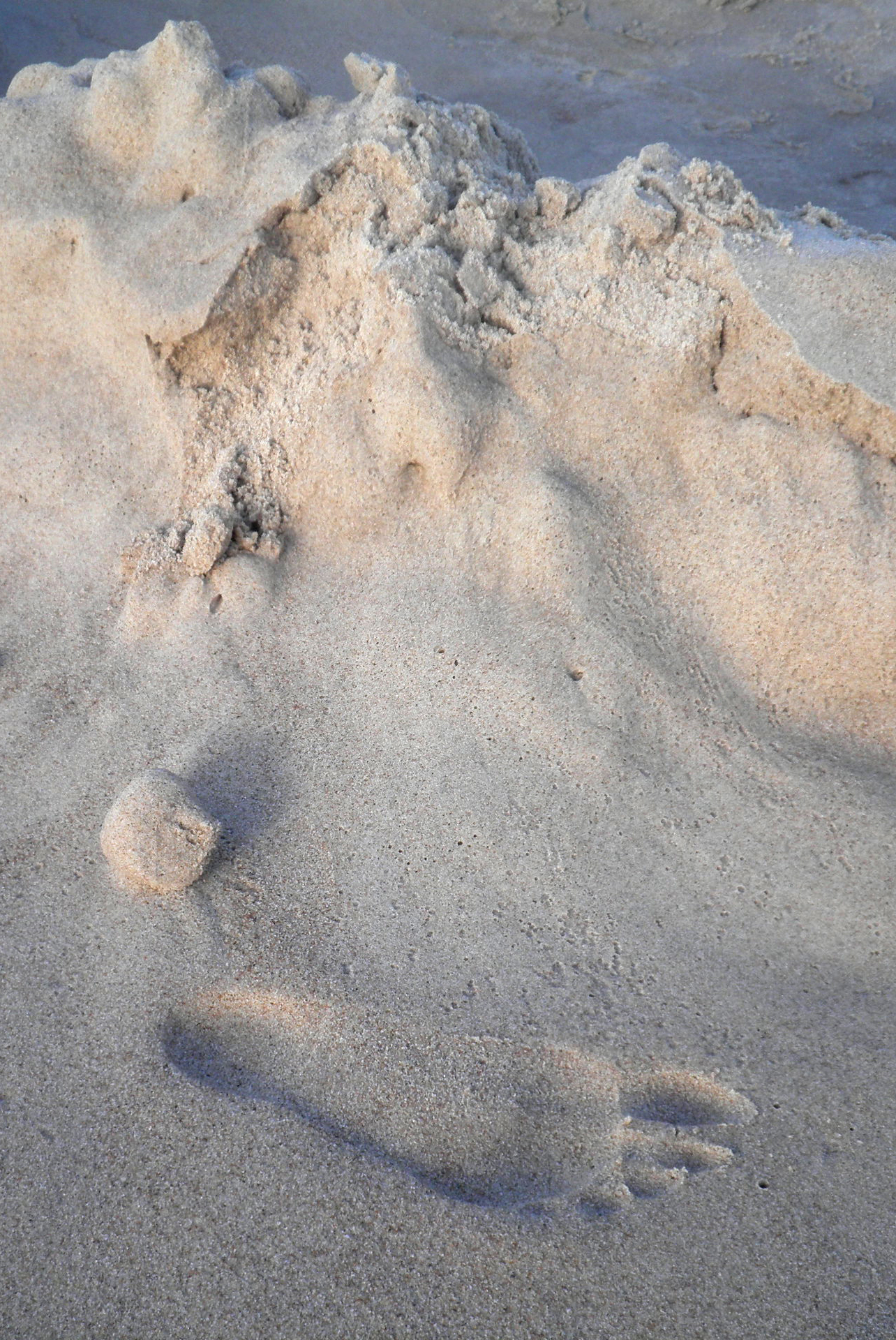English: Child's footprint in the sand. Sandy beach, human footprint. |