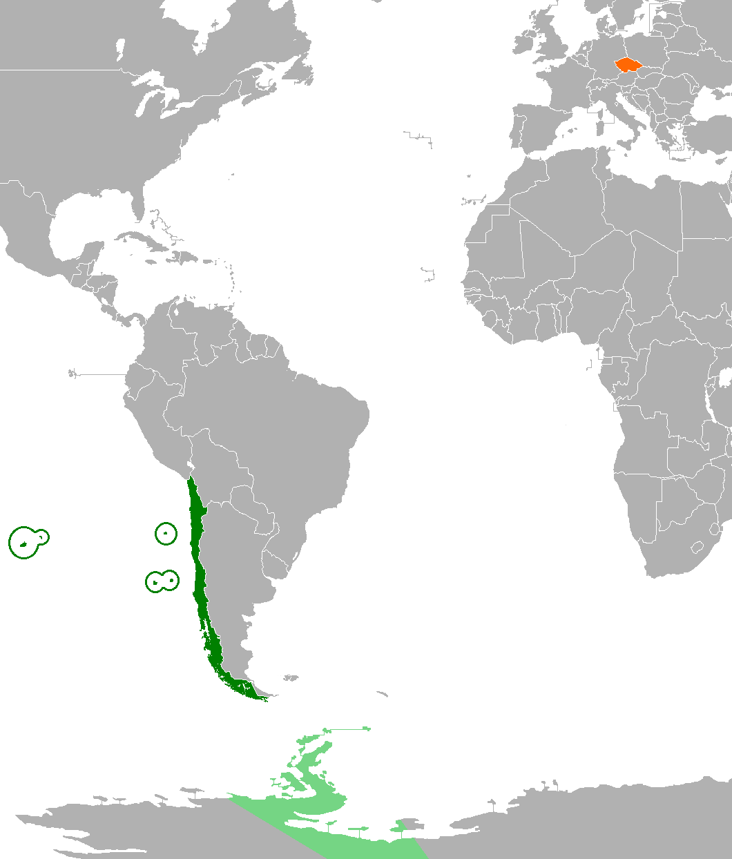 Español: Localización de Chile y República Checa. |