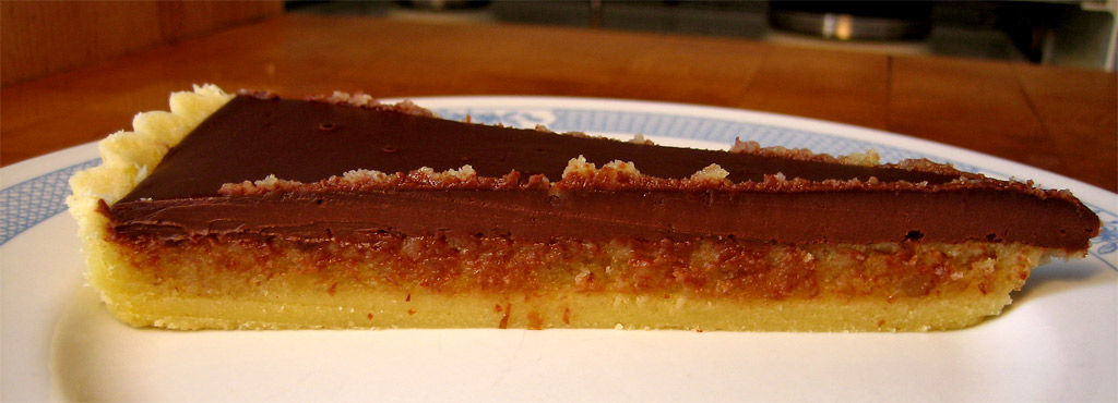 | Description | Chocolate tart with frangipane in the center. Frangipane is a filling made from or flavored like almonds. | ||