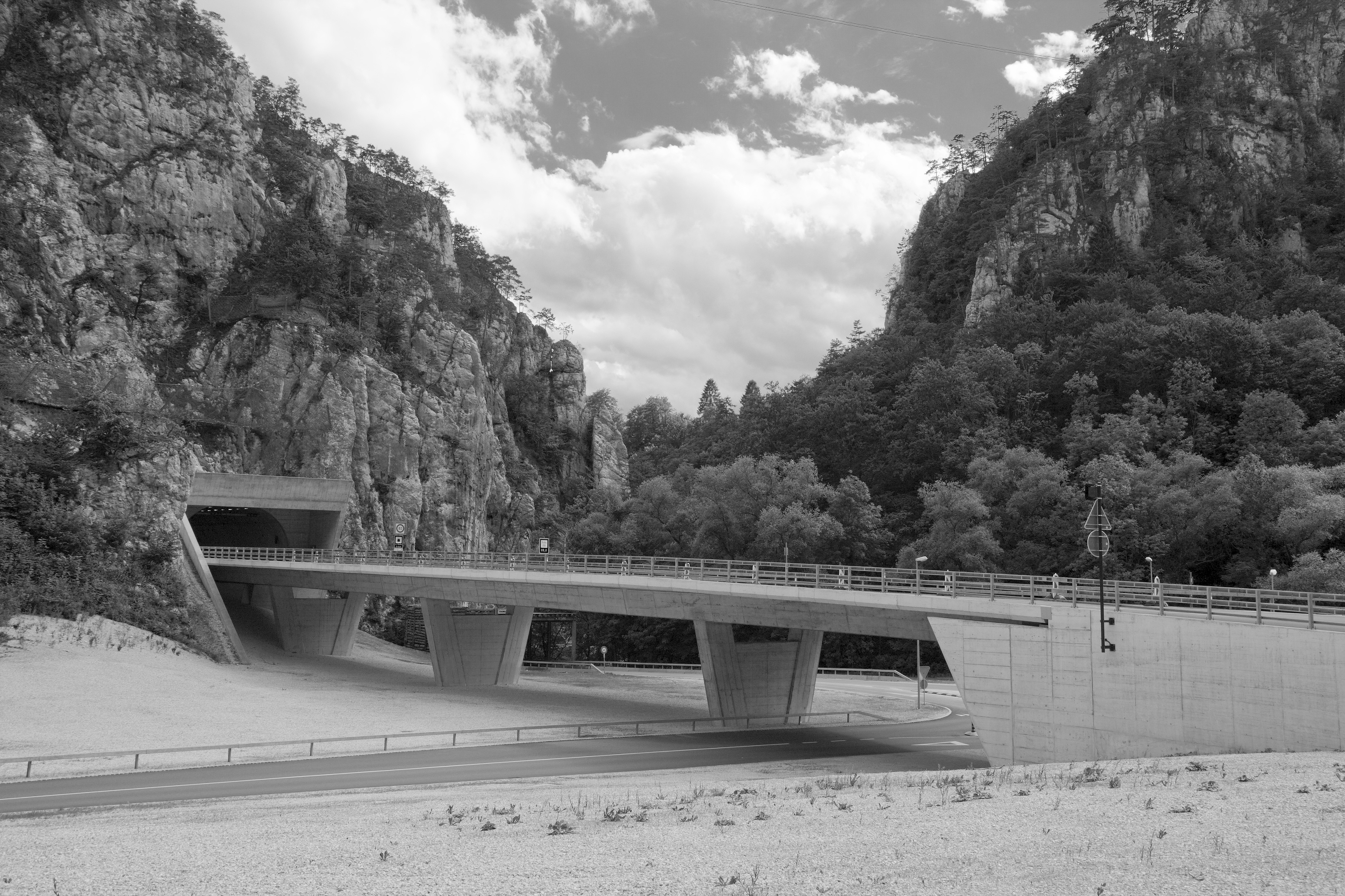 Deutsch: Autobahnbrücke der A16 «Transjurane» bei Choindez, Schweiz Auf dem mittleren Brückenpfeiler habe ich eine Schmiererei wegretouchiert |