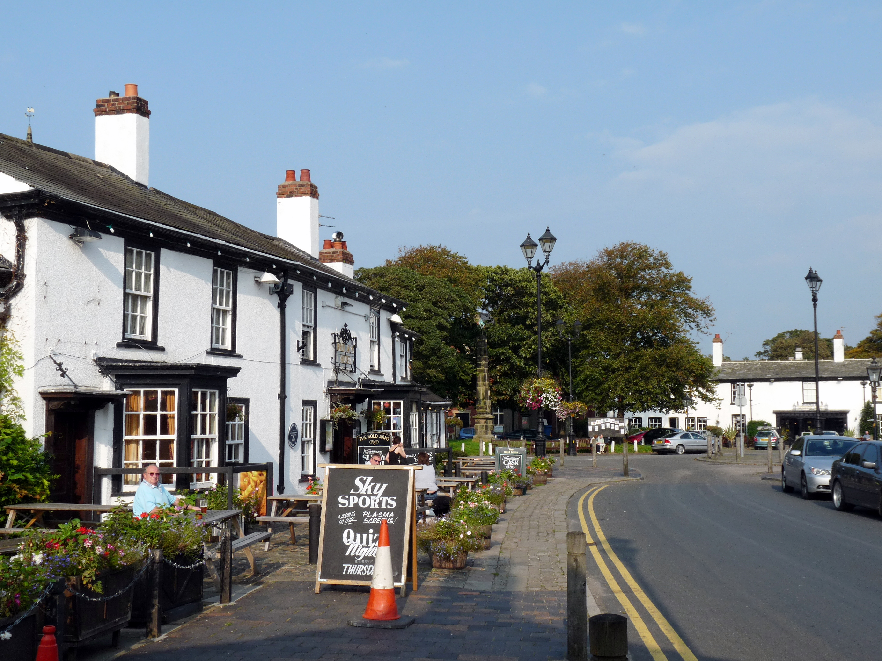 English: Churchtown, a suburb of Southport in Merseyside, England. On the left is the Bold Arms Pub on Botanic Road, looking towards the Hesketh Arms pub and village green. |