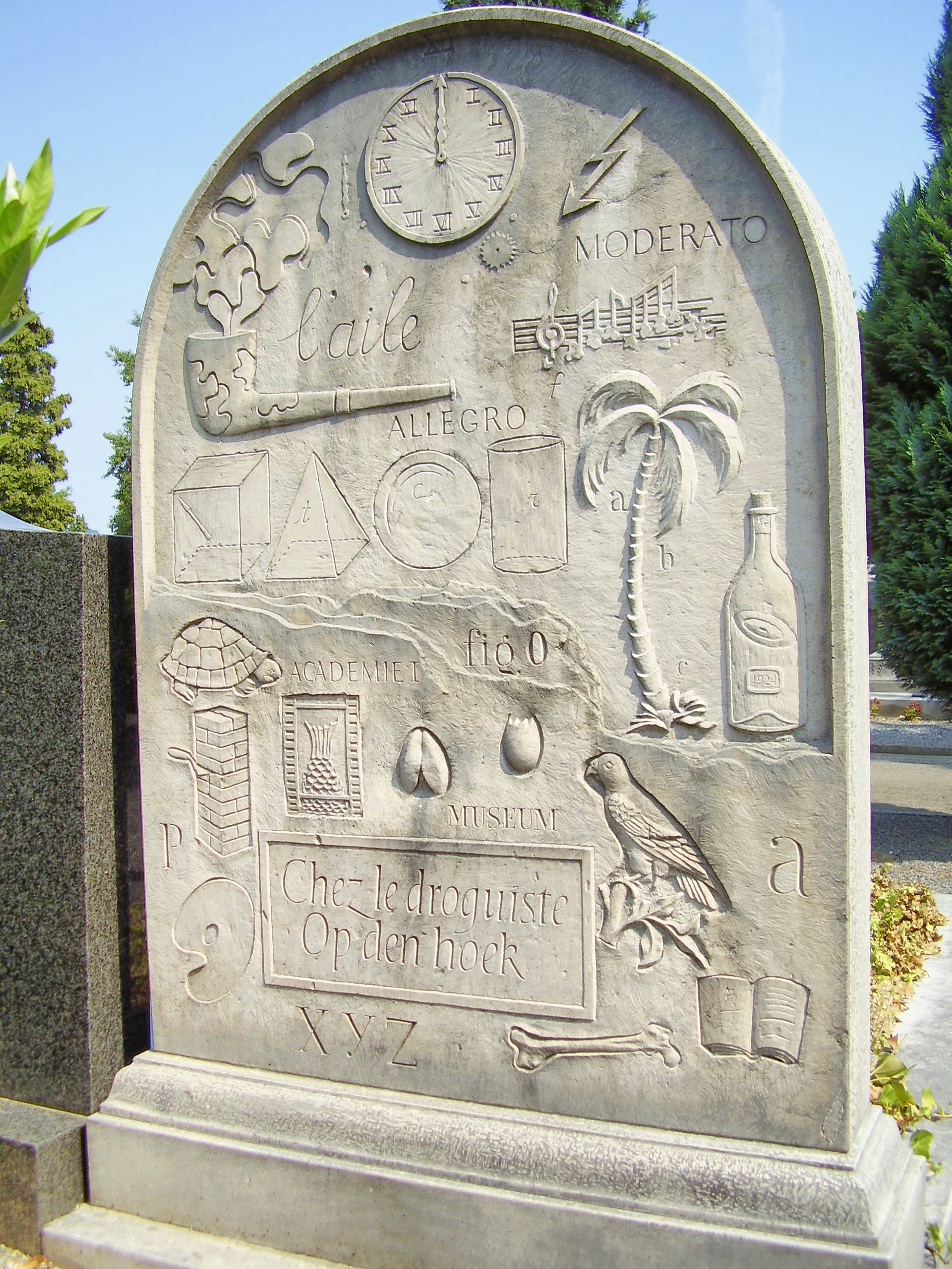 Français : Cimetière d’Ixelles (Bruxelles), recto de la sépulture de Marcel Broodthaers, par Karel Van Roy