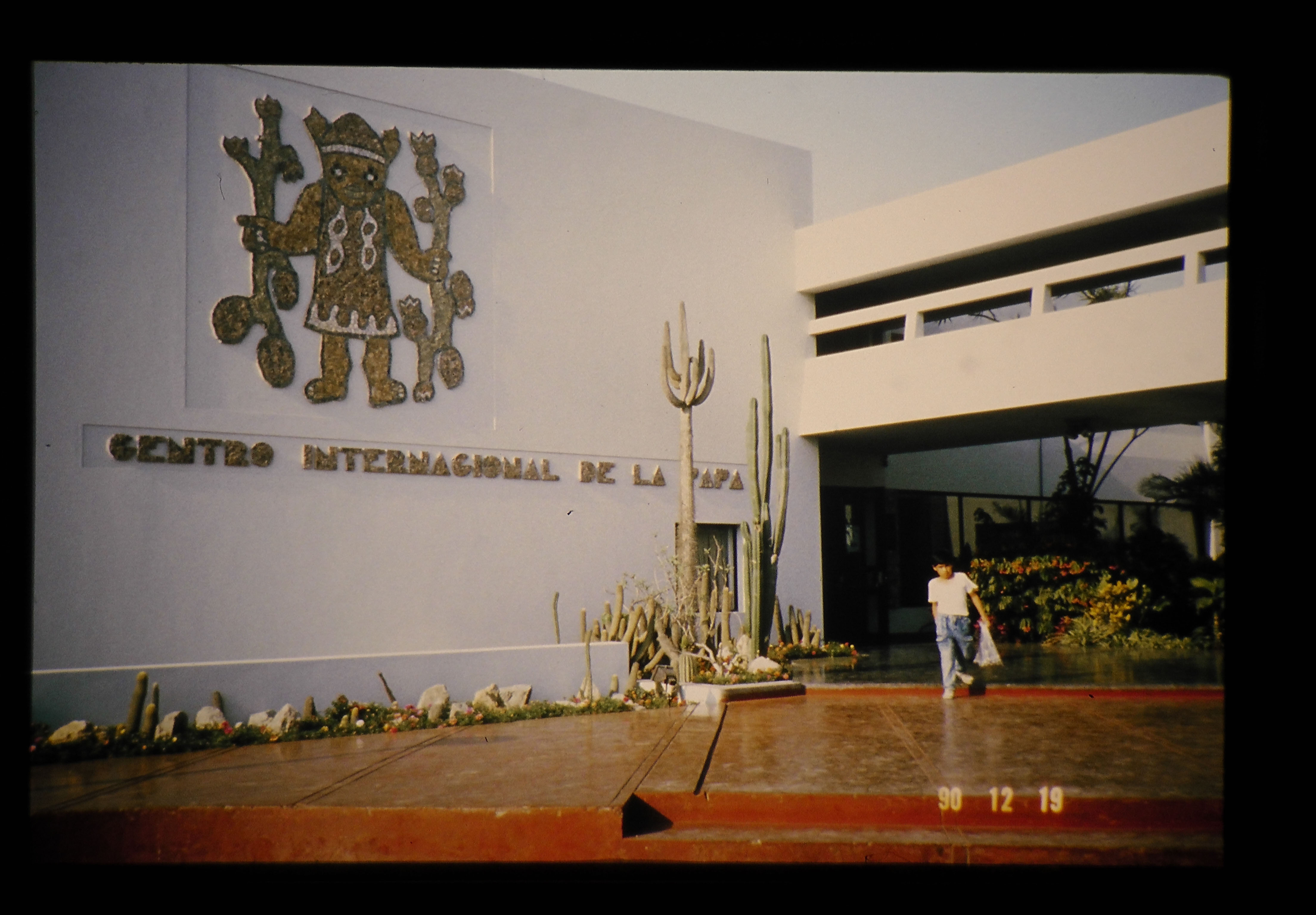 Author: Ishiki Koshun 伊敷弘俊 (TARC) Date: 1990.12.19 Description: ペルーの首都リマ郊外には、バレイショを中心にイモ類の研究をしている国際バレイショセンター(CIP)の本部がある。CIPの研究対象作物としてサツマイモとアンデス独特の芋類が最近加えられた。 Project: 原産地におけるいも類の遺伝的変異の解析 Country: ペルー (Peru) Place: Cip.(international Potato Center) (CIP.(国際バレイショセンター)) Keywords: 原産地におけるいも類の遺伝的変異の解析,ペルー,CIP.(国際バレイショセンター),建物,Cip. Peru Slide no. 02-050-06