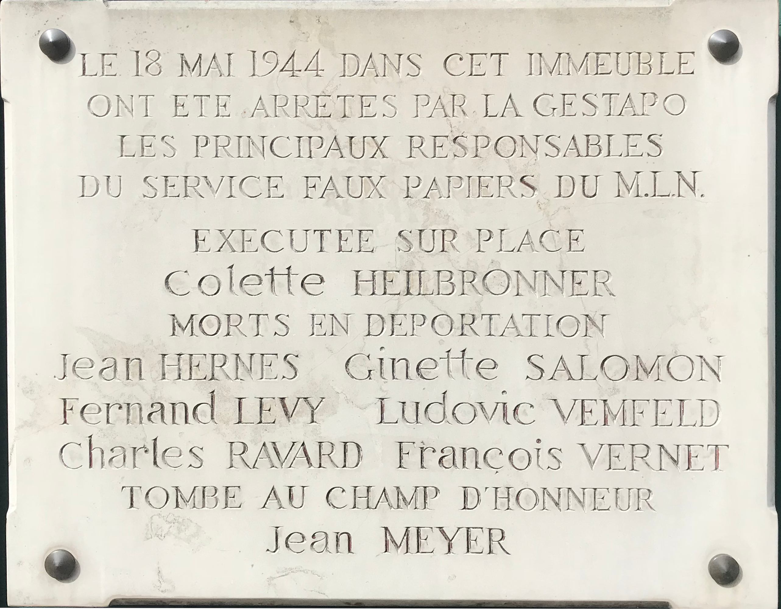 - Plaques referencing 1944 in Paris