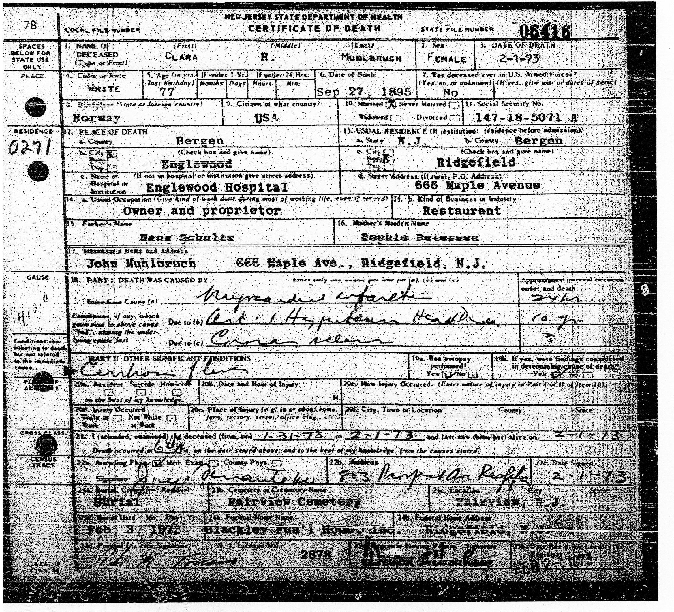 ملف:Clara Helene Schultz (1895-1973) death certificate.png