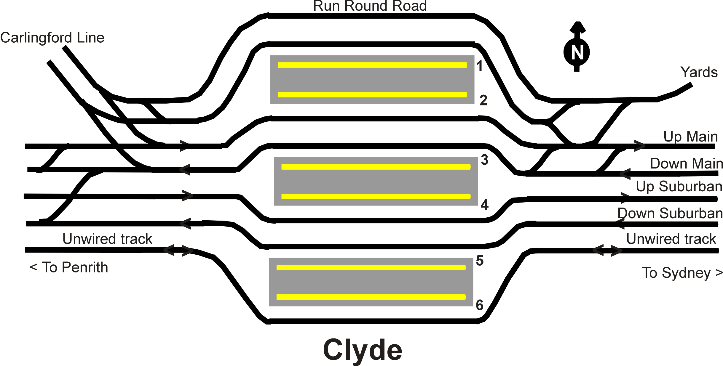 English: Track layout at Clyde railway station |