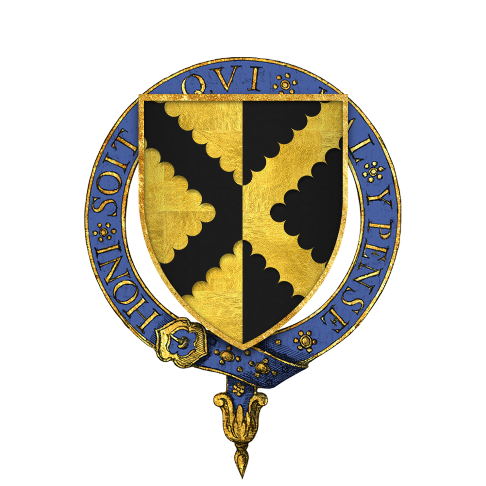 English: Coat of arms of Sir Richard Pole, KG. Blazon: Per pale or and sable, a saltire engrailed counterchanged. |