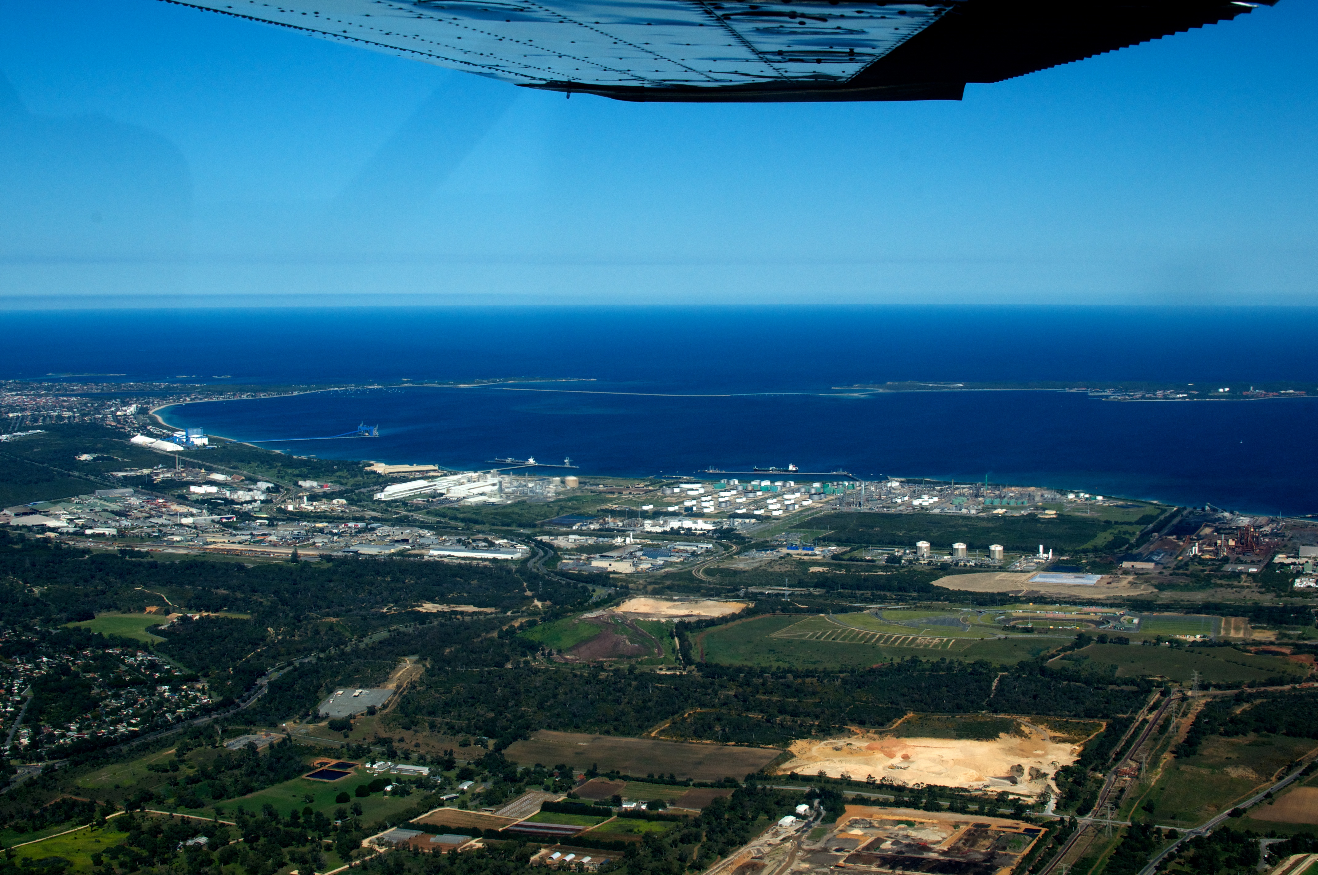 | Description | Cockburn Sound from the air, taken from over Hope Valley in a WSW direction. Garden Island is at the top right. Thomas Oval in western Medina is visible near the bottom left, while Abercrombie Road, Postans, can be seen along the bottom of the map. | ||