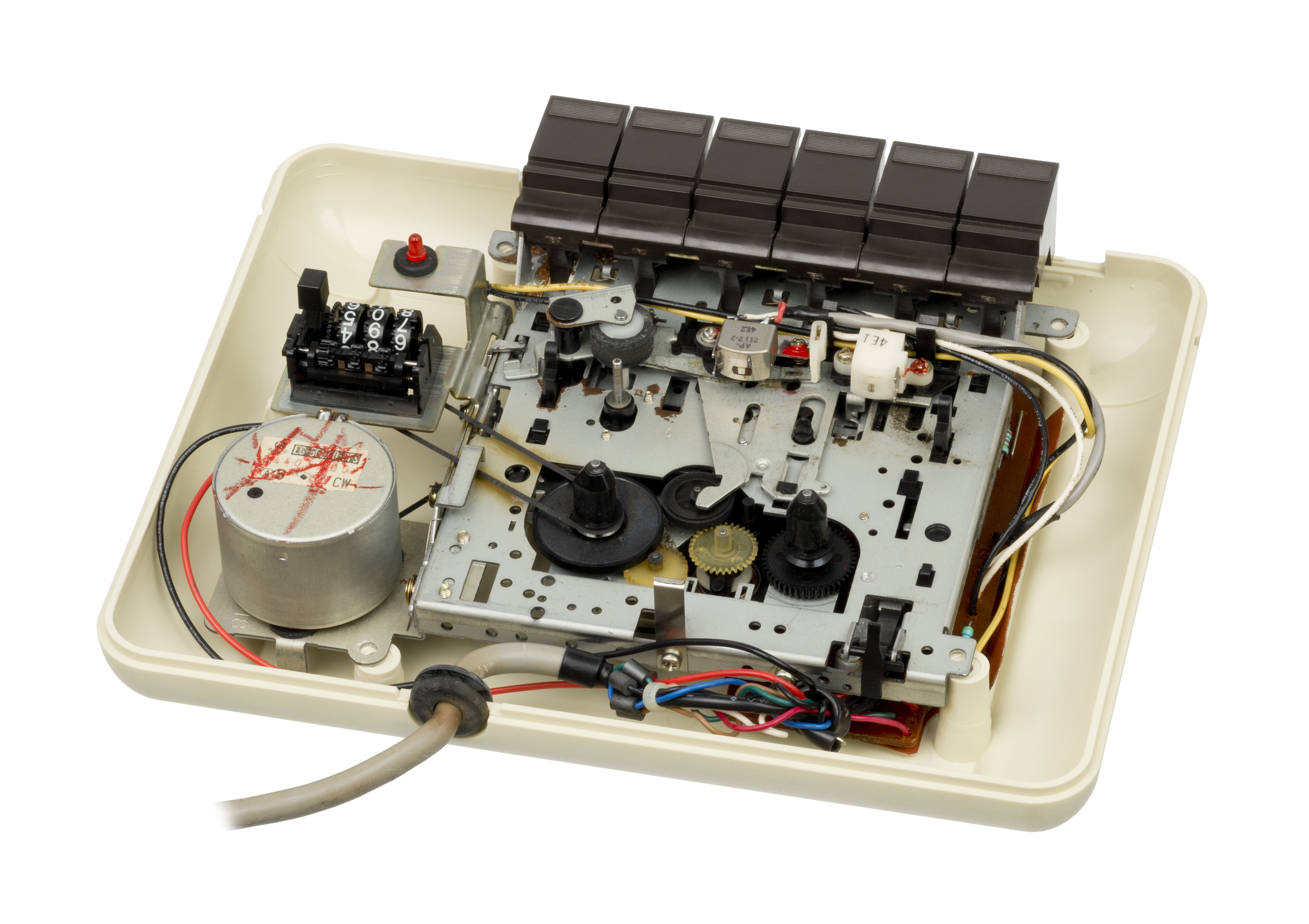 | Description | A Commodore 1530 (C2N) Datasette drive for the Commodore line of computers, shown with the top casing removed. This made it possible to save and run programs from inexpensive cassette tapes. | ||