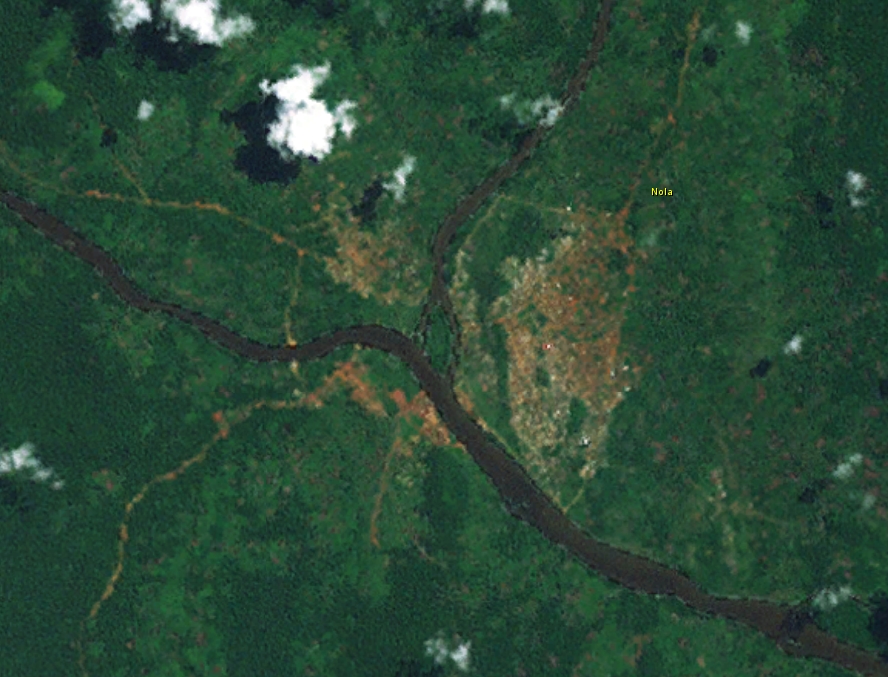 English: Confluence of Kadei and Mambere river at Nola, forming Sangha River |